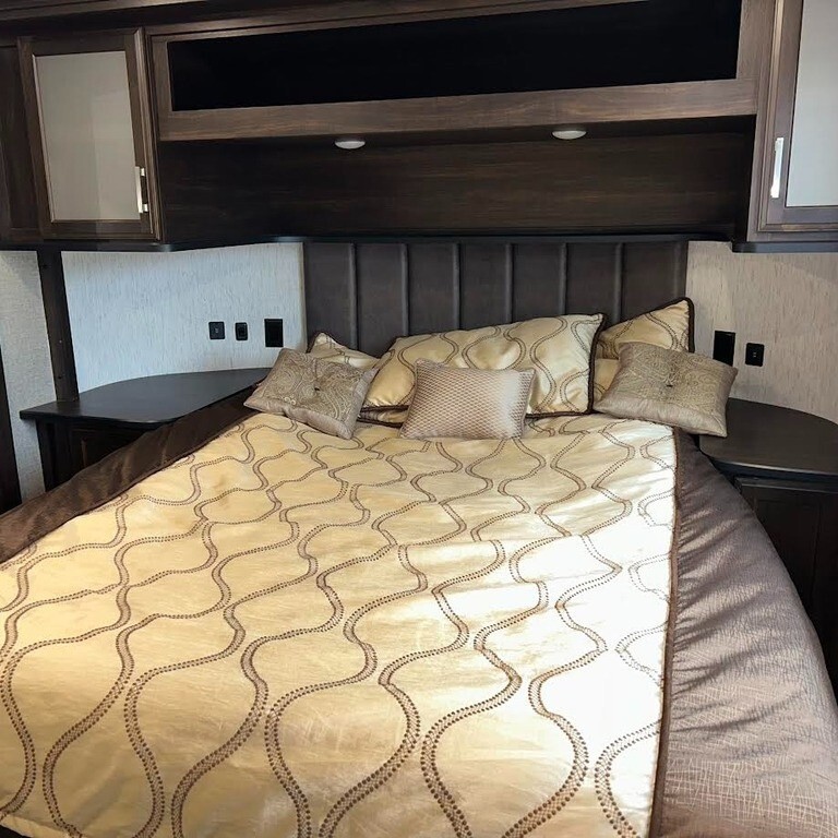 This Grand Design has an overall length of 39.75 feet and comes equipped with 3 power retractable slide-outs with toppers, 2 power retractable awnings, 3 A/C units, an Onan 5500 generator, a 14’6” garage, and plenty of room to sleep 8. This unit has been well-maintained.