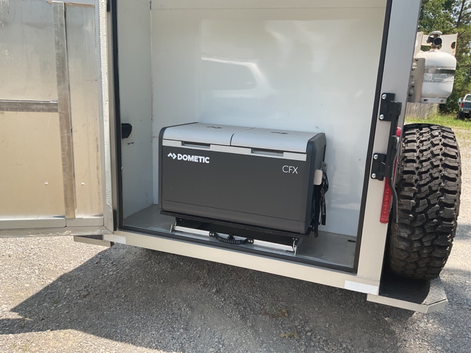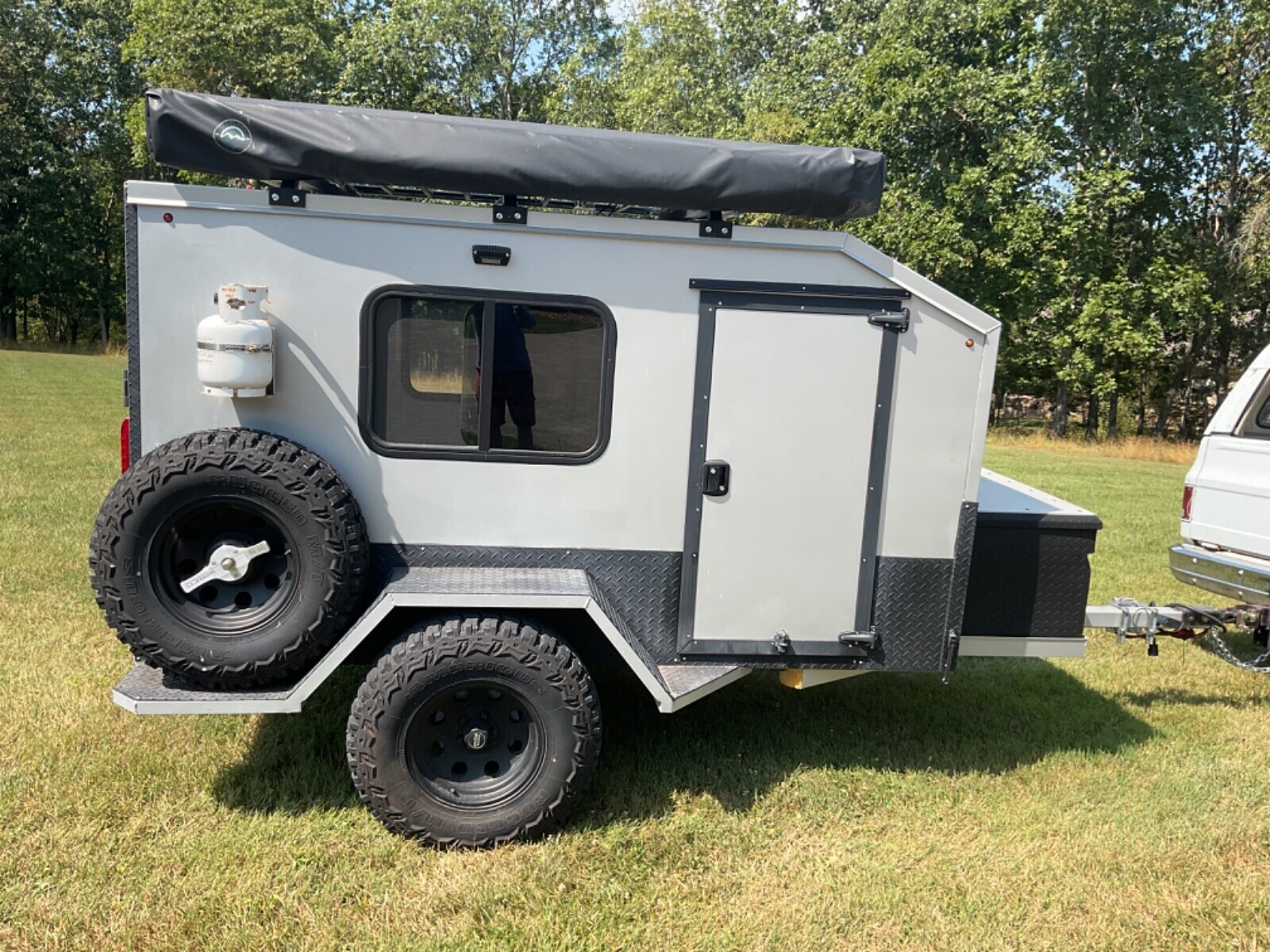 2020 weroll gladiator great little setup never used extras include spare tire mount/propane tank/electric brakes/tool box/solar setup/3/4 awning/shower setup/articulating hitch dometic refrigerator/freezer can be purchased for 500.00 with the trailer