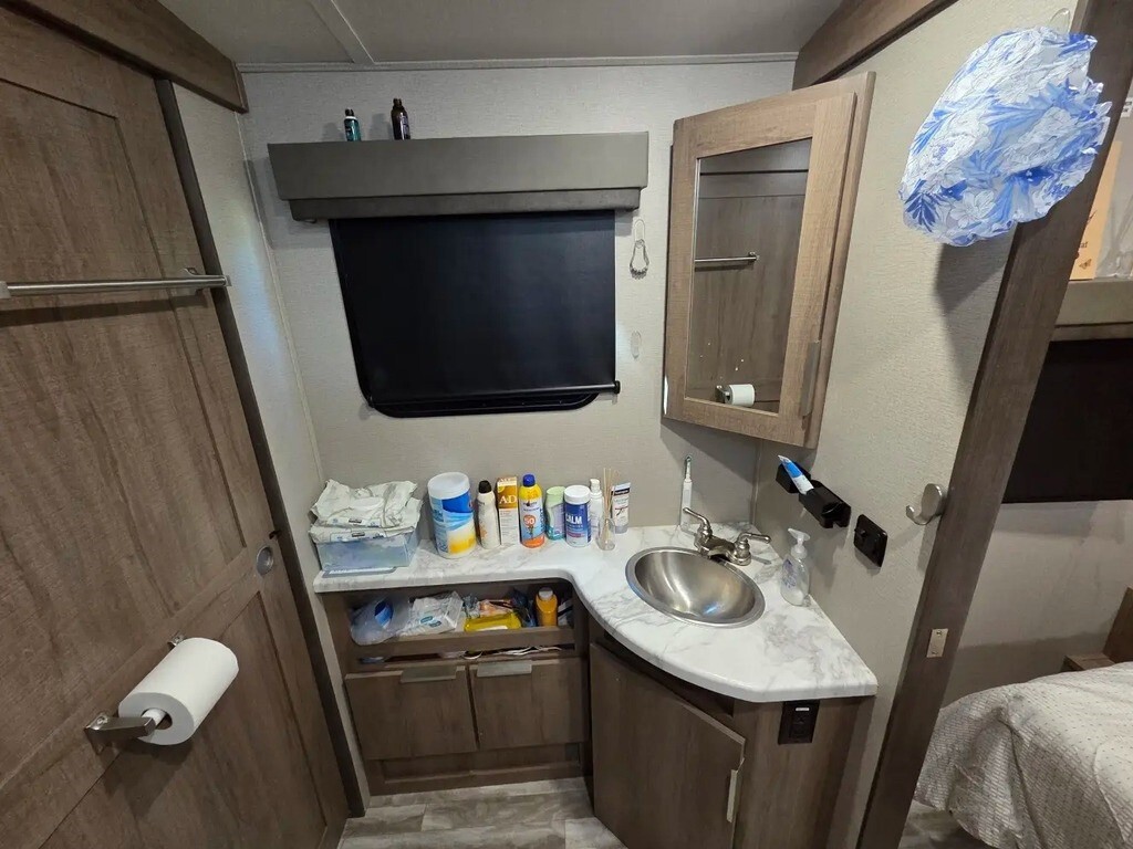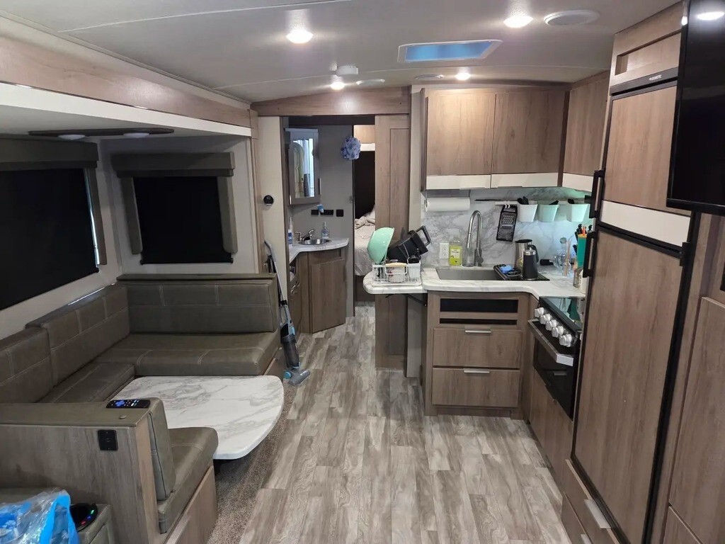 2021 Grand Design Imagine 2910BH Travel Trailer For Sale in Glastonbury, CT 06033 This Grand Design has an overall length of 33.92 feet and comes equipped with 1 power-retractable slide-out, a 21-foot power awning, 1 A/C unit, a bunkhouse, an outdoor kitchen, and room to sleep up to 8. This unit has been well-maintained and has 1 year remaining on the transferrable warranty. Kitchen/Living Area Features 3-Burner Stove/Oven Overhead Fan Microwave Mid-Size Fridge/Freezer Sink & Faucet Pantry/Storage Space U-Shaped Dinette &