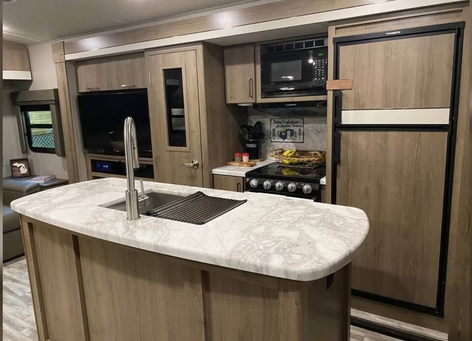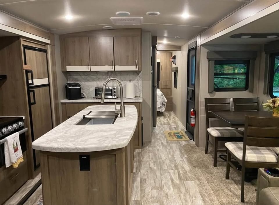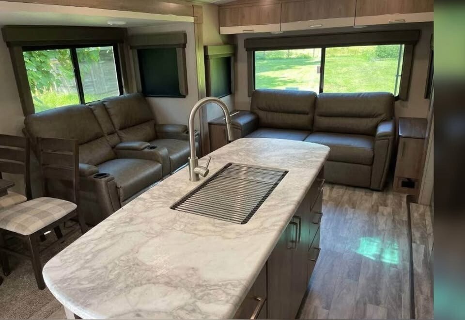 2021 Grand Design Imagine 2970RL Travel Trailer For Sale in Crossville, TN 38572 This Grand Design has an overall length of 34.17 feet and comes equipped with 2 power retractable slide-outs, 2 power retractable awnings, 2 A/C units, and plenty of room to sleep 6. This unit has been well-maintained. Kitchen Features 3-Burner Stove/Oven Overhead Fan Microwave Full-Size Fridge/Freezer Sink & Faucet Pantry Storage Space Living Room Features TV