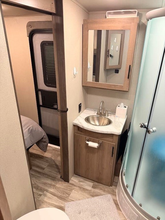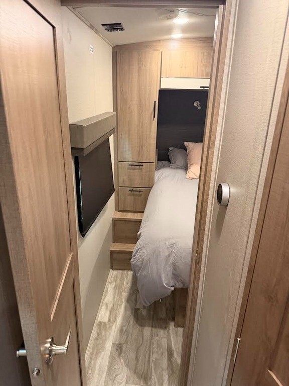 “This RV has been well taken care of and regularly maintained. There are2 brand new AGM 6 volt batteries.The tires are approximately one year old, providing peace of mind for your travels. It is equipped with a ProPride hitch for improved towing stability and safety, along with an upgraded air conditioning system featuring RV Airflow for better cooling efficiency and comfort.