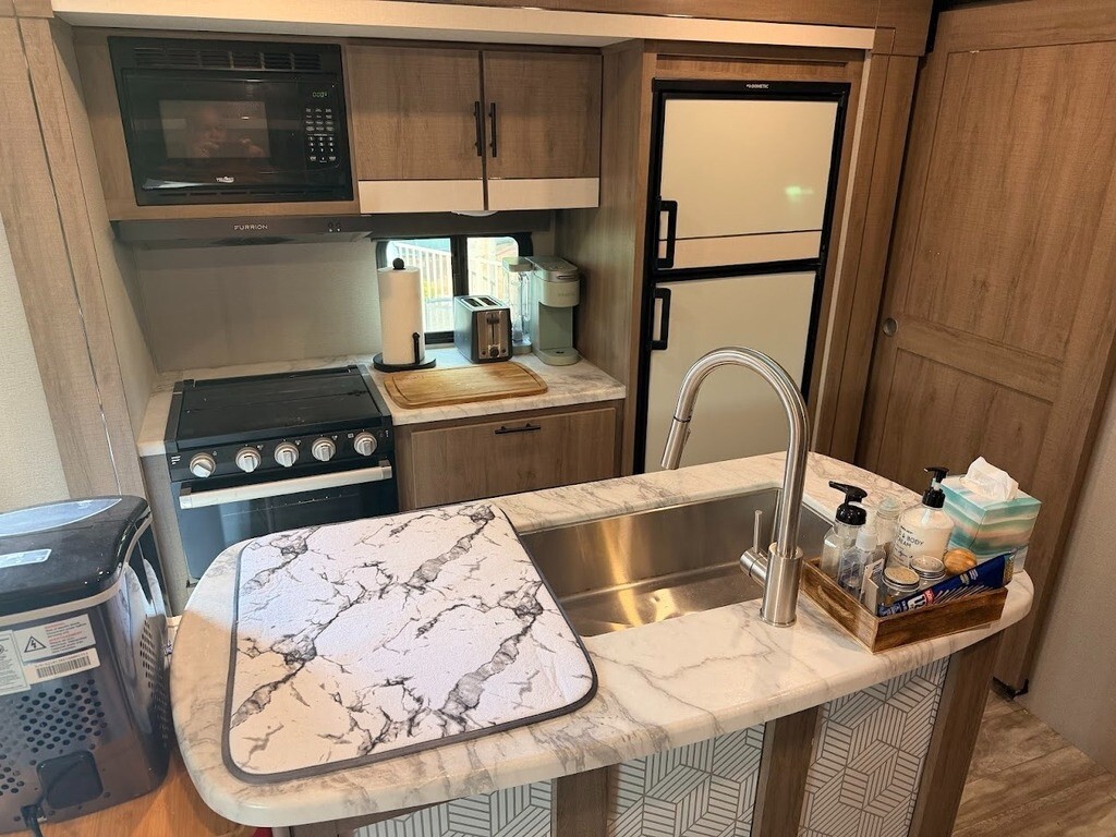 Additional updates include an upgraded bathroom faucet, and the exterior has been waxed twice a year to maintain its finish. Overall, this RV has been meticulously cared for and is ready for its next owner to enjoy.”