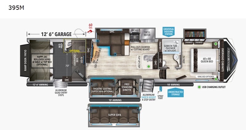 Grand Design Momentum M-Class toy hauler 395M highlights: