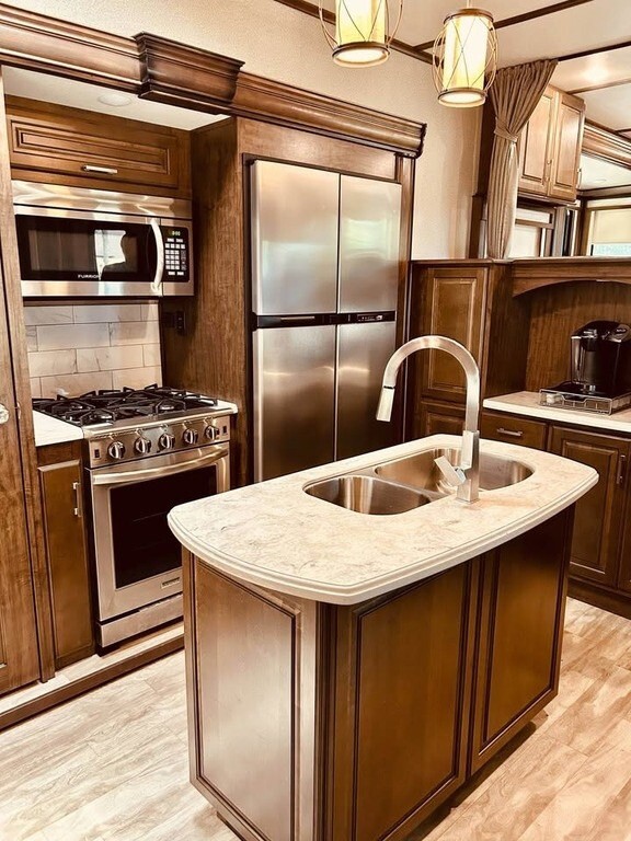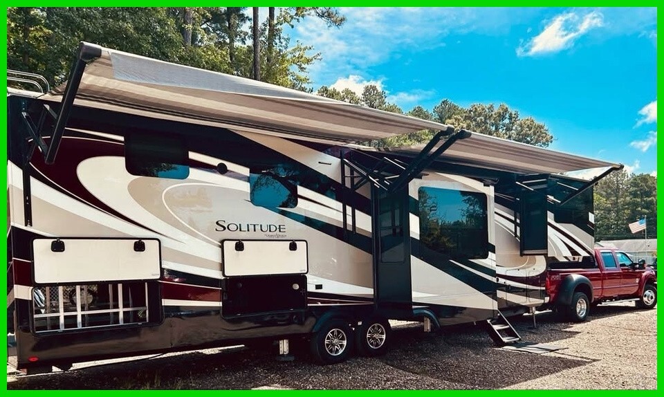 2021 Grand Design Solitude380FL Fifth Wheel For Sale in Yorktown, VA 23692 This Grand Design has anoverall length of 41.42 feet and comes equipped with 5 power retractableslide-outs, 2 power retractable awnings, a generator, 1½ baths, a fireplace, androom to sleep up to 6. This unit has been well-maintained. Kitchen Features 4-Burner Stove/Oven Overhead Fan Microwave Full-Size Fridge/Freezer Sink & Faucet onIsland Coffee Bar Pantry/Storage Space Booth Dinette ½ Bath