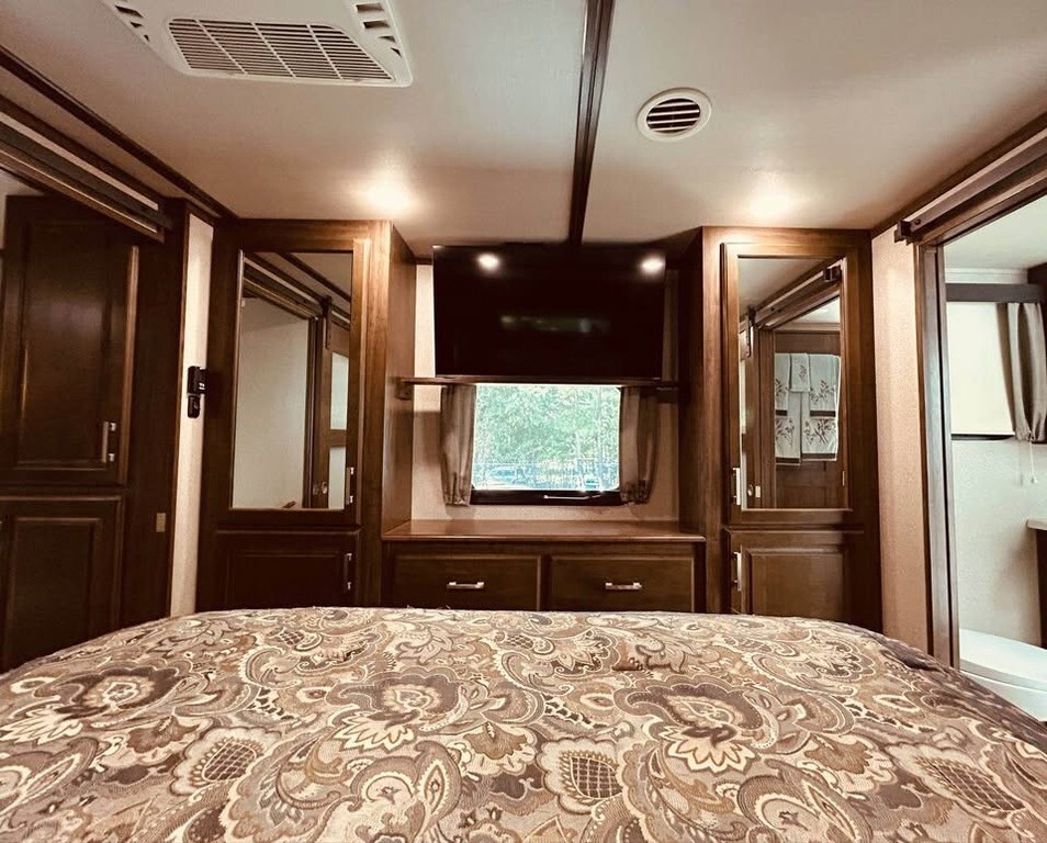 This Grand Design has anoverall length of 41.42 feet and comes equipped with 5 power retractableslide-outs, 2 power retractable awnings, a generator, 1½ baths, a fireplace, androom to sleep up to 6. This unit has been well-maintained.