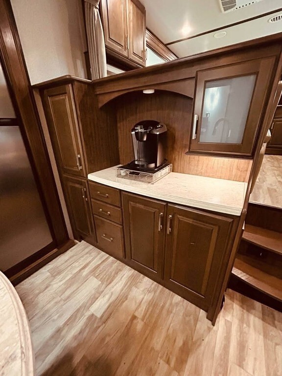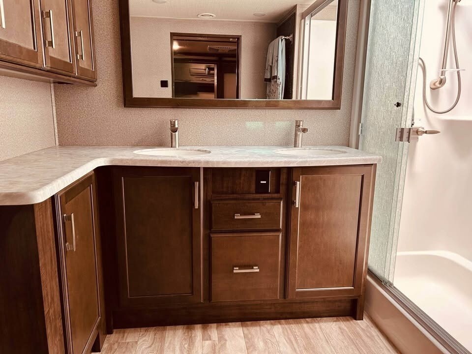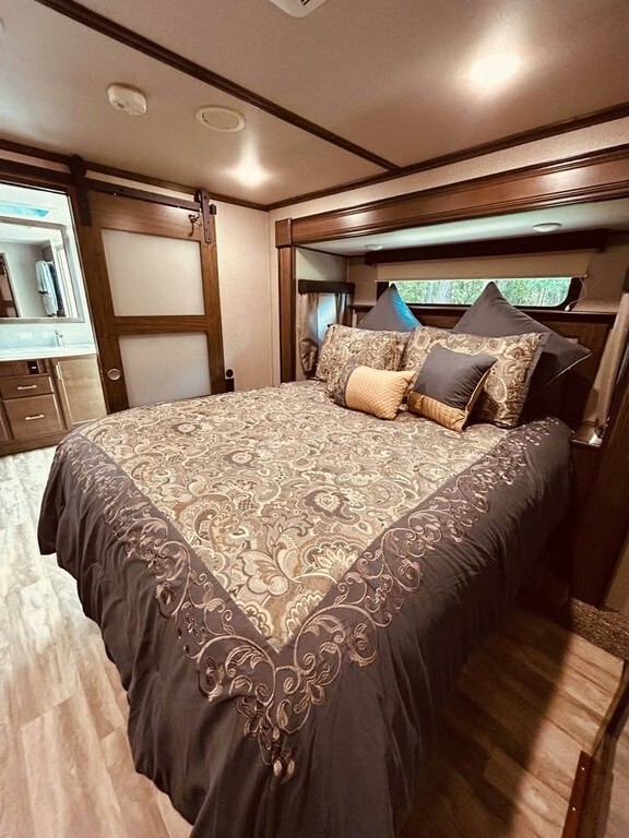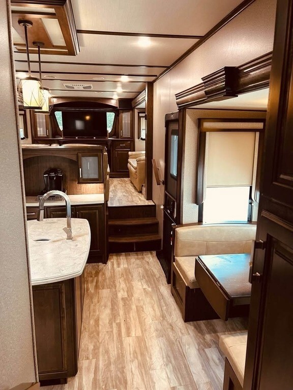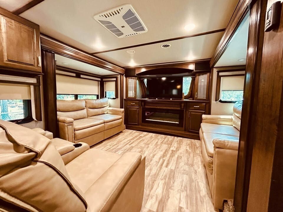 “For sale is a 2021 GrandDesign Solitude ST380FL Fifth Wheel, equipped with the Weather-Tek package andloaded with premium features for year-round comfort and luxury travel. Thisunit boasts full body paint, solar capability, a generator, five slides, andauto-leveling for ultimate convenience. The spacious front living area includesa cozy fireplace and theater seating with heat and massage functions. Theresidential-style kitchen features a full-size refrigerator, center island, andplenty of storage. In the rear, you'll find a comfortable queen bed, a full privatemaster bathroom, and a rearview camera system for added safety. Alwayswell-maintained.