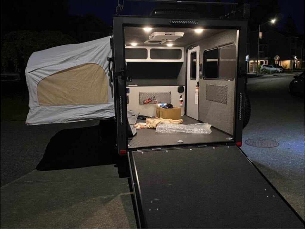 “For sale is our 2021 inTech Flyer Discover Travel Trailer—anawesome all-in-one adventure camper and micro toy hauler that’s fully upgradedand ready to go! Lightweight and easy to tow, this rig is perfect for off-gridescapes, weekend getaways, or hauling your toys into the wild. It’s packed withupgrades, including roof-mounted solar panels and a brand new 300Ah EpochLiFePO4 Bluetooth lithium battery for reliable, long-lasting power. The layoutincludes a roadside tip-out for extra sleeping space and a rear ramp door with9 tie-downs—ideal for bringing along motorcycles, an ATV, or a side-by-side. Inside, you’ll find awell-thought-out setup with a sink, 2-burner stove, Bluetooth stereo, MaxxAirvent fan, and both A/C and heat for year-round comfort. On the outside, enjoy apower awning, roof rack for additional gear, bright LED exterior lighting, andmultiple outlets around the trailer. It also features a 2" rear receiver(100 lb. capacity), perfect for a bike rack. We've taken excellent care of this unit and just upgraded thebattery, so it’s truly ready for your next off-grid adventure. Clean title inhand.”