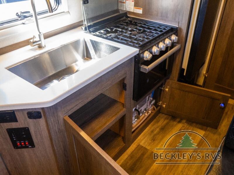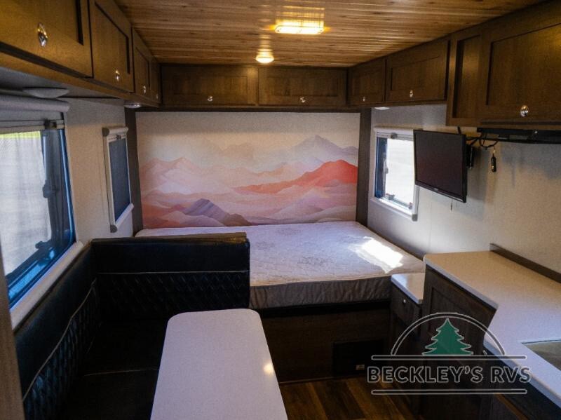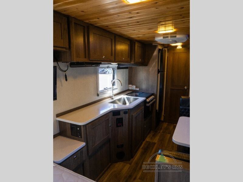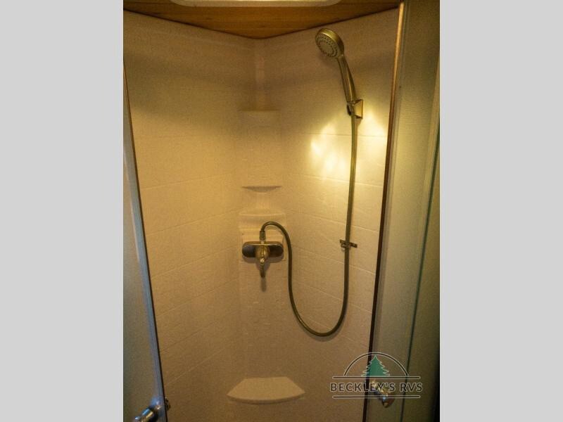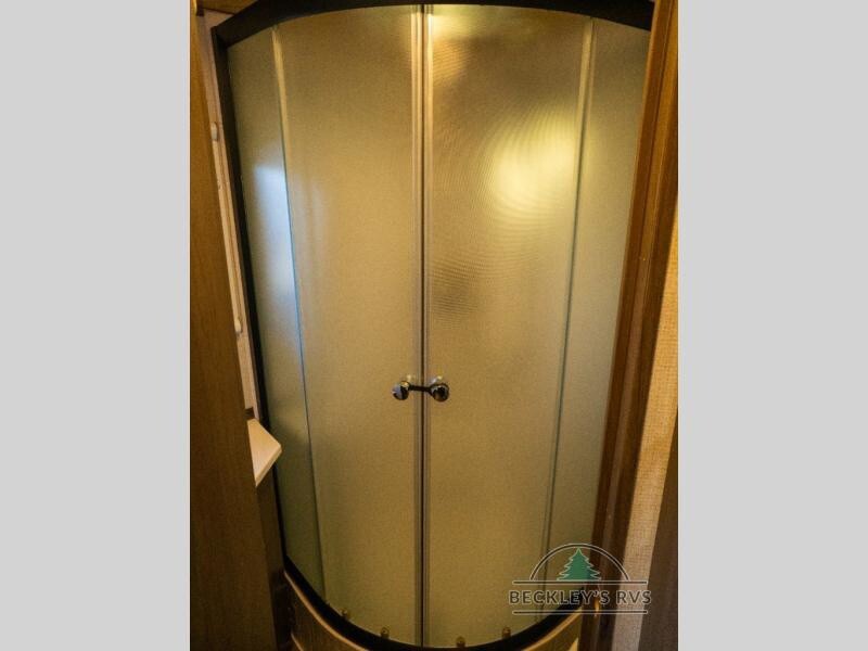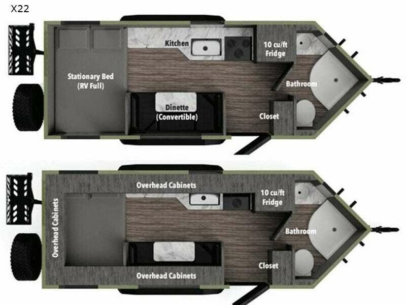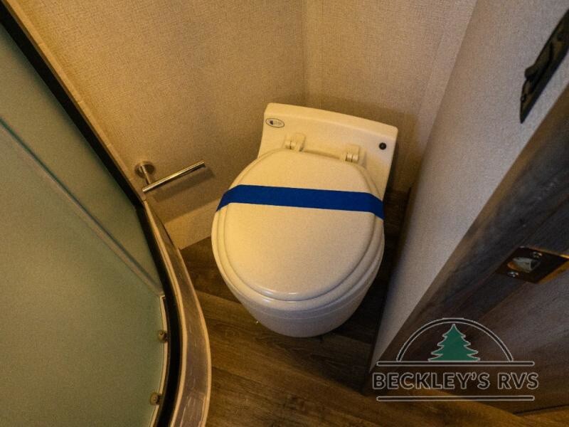 Full Bathroom Full Size Bed Booth Dinette Overhead Cabinets Pass-Through StorageHead off-grid with this travel trailer! It features a full front bathroom with a radius shower to clean up in each morning and a dry flush toilet so you don't have to worry about a black water tank in the back country. Just outside the bathroom is a closet and a 10 cu. ft. refrigerator to keep your perishables fresh. After you have prepared a delicious meal on the three burner cooktop, you can head to the convertible booth dinette to enjoy it there then play a card game or two. The rear full bed is stationary and offers a comfortable nights rest!