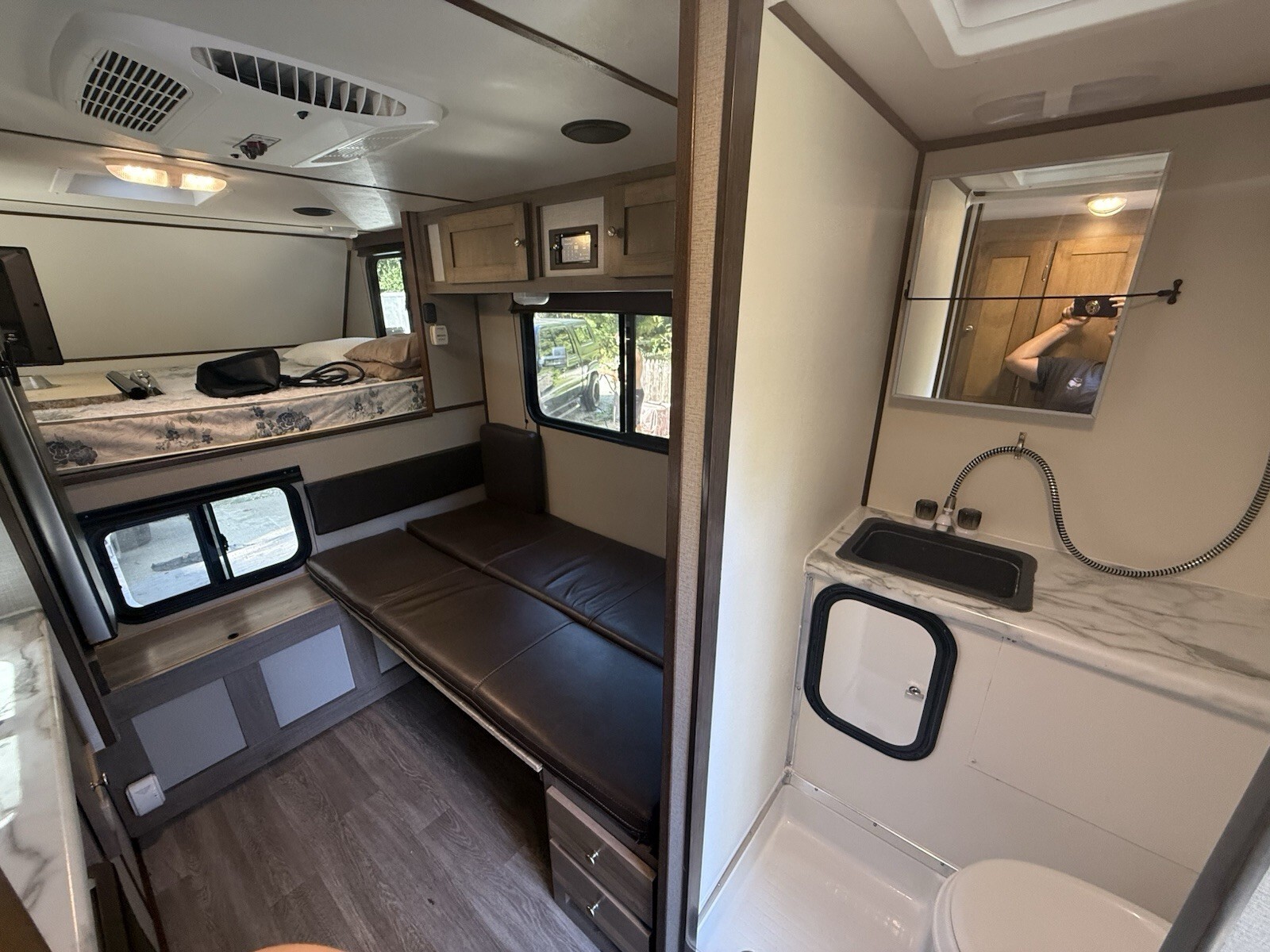 2022 RV Direct Truck Bed Camper Drifter Travel GREAT CONDITION-Used for 1 trip-Bought to travel to Alaska, but trip got cancelled-Will deliver within 250 miles-Stove, Sink, Refrigerator, Microwave, Bathroom, Shower, Sitting area converts to twin sleeping area, Full size bed, Tv, Radio surround system, Awning, AC and Heating, Propane, Many storage, Instant hot water, automatic fanning system-400 watts solar panel- Compatible with 8’ truck bed**Can deliver with addition cost based on location