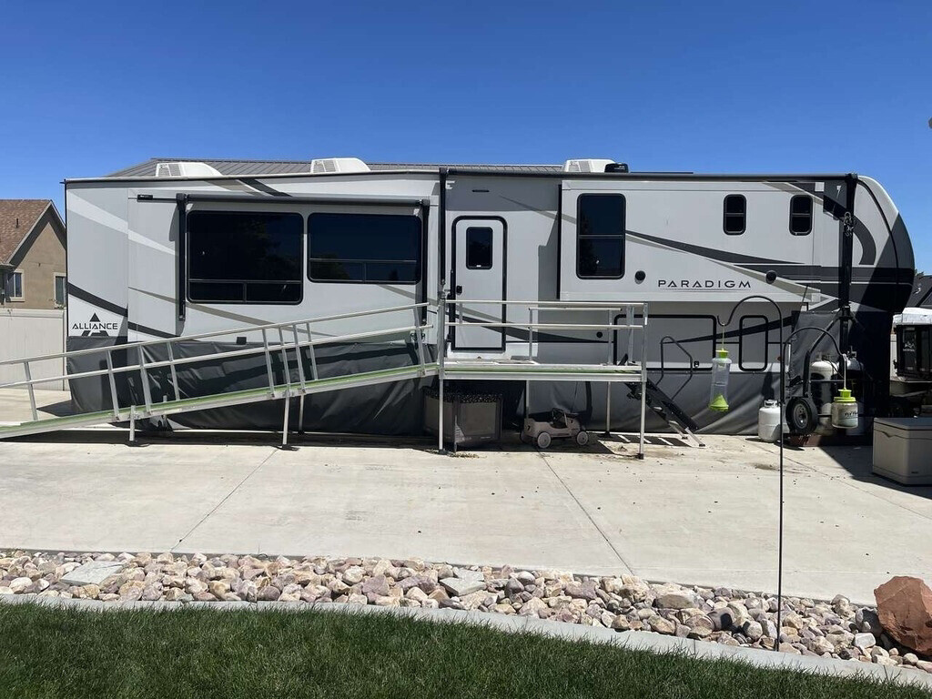2023 Alliance Paradigm R328K 2023 R382K 42 foot Alliance Paradigm 5th Wheel, in excellent condition. This top-of-the-line model comes with incredible upgrades and extras, making it the perfect home away from home. Truly an all season 5th wheel. Features and Upgrades: $3,000 Custom Skirt: Keep your RV protected and insulated with this high-quality custom skirt built for this 5th wheel. Large Double Propane Tanks with Custom Trailer: Enjoy extended off-grid living with ample propane storage and a convenient custom trailer for easy refill and transportation. Additional Portable Dishwasher: Maintain the comforts of home with this efficient and space-saving portable dishw