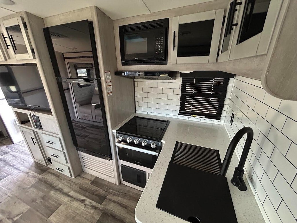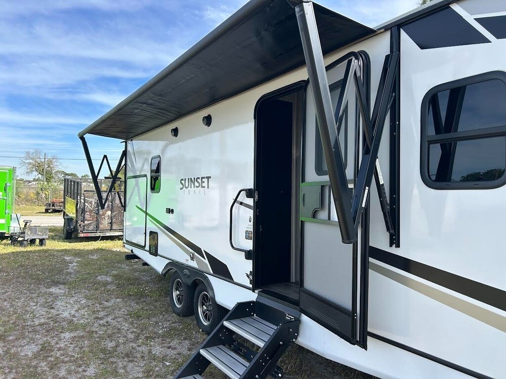 2023 CrossRoads Sunset Trail Super Lite SS253RB Travel Trailer For Sale in Cape Coral, FL 33904 This CrossRoads has an overall length of 29.92 feet and comes equipped with 1 power-retractable slide-out, a 20-foot power awning, 1 A/C unit, an outdoor kitchen, and plenty of room to sleep 4. This unit has been well-maintained. Kitchen/Living Area Features 3-Burner Stove/Oven Overhead Fan Microwave Full-Size Fridge/Freezer Sink & Faucet Pantry/Storage Space Booth Dinette TV Theater Seating