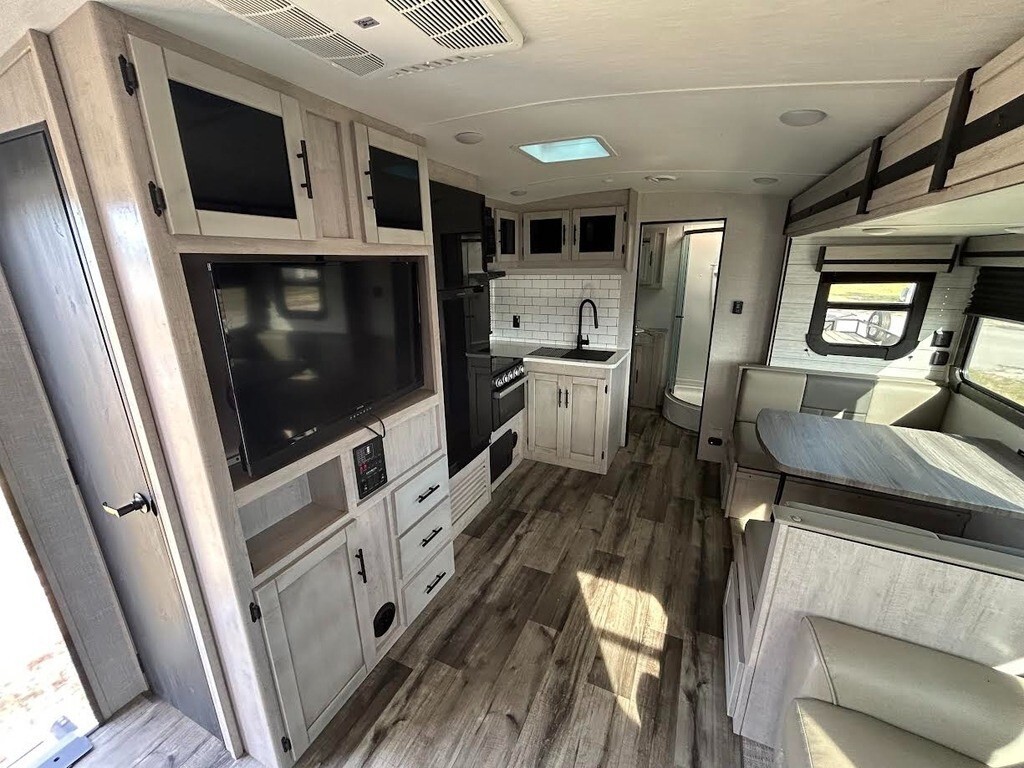 “For sale is a 2023 CrossRoads Sunset Trail Super Lite SS253RB Travel Trailer in excellent condition. This trailer features recliners in place of the standard sofa, offering extra comfort and a great view of the entertainment center. It’s been upgraded with dual batteries for extended off-grid use and a backup camera for easy towing and parking. A new roof was recently installed, so it’s fully weather-tight and ready for travel. Everything works as it should—appliances, slide-out, and all systems are in great shape. A well-kept, lightly used trailer that’s ready for your next adventure.”