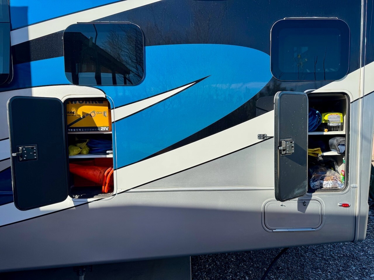 - Dedicated sewer hose storage compartment with expanded metal mesh floor