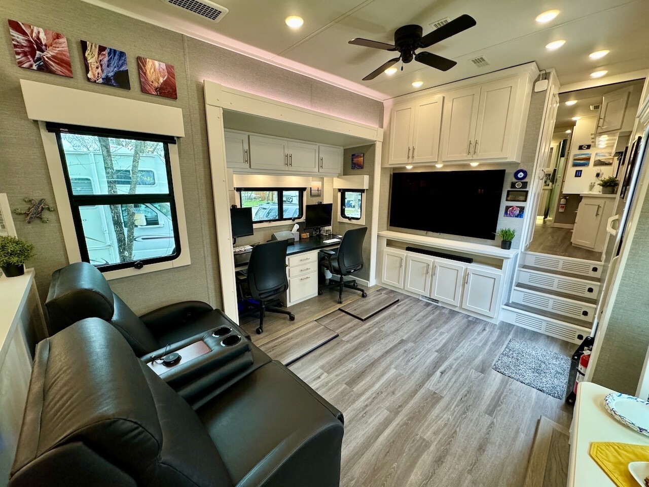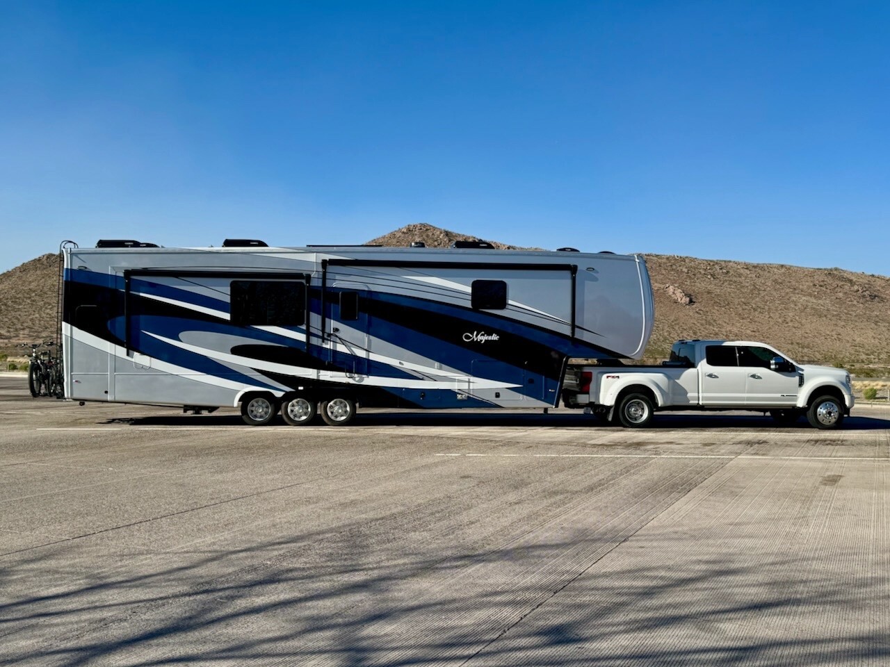 We are the original owners of this custom-designed luxuryNew HorizonsMajestic fifth wheel trailer. It has been our full-time “apartment on wheels” for the last 2 1/2 years. We have loved every minute of living in it, but we are now coming off the road, so it will soon be the home of another lucky RVer.