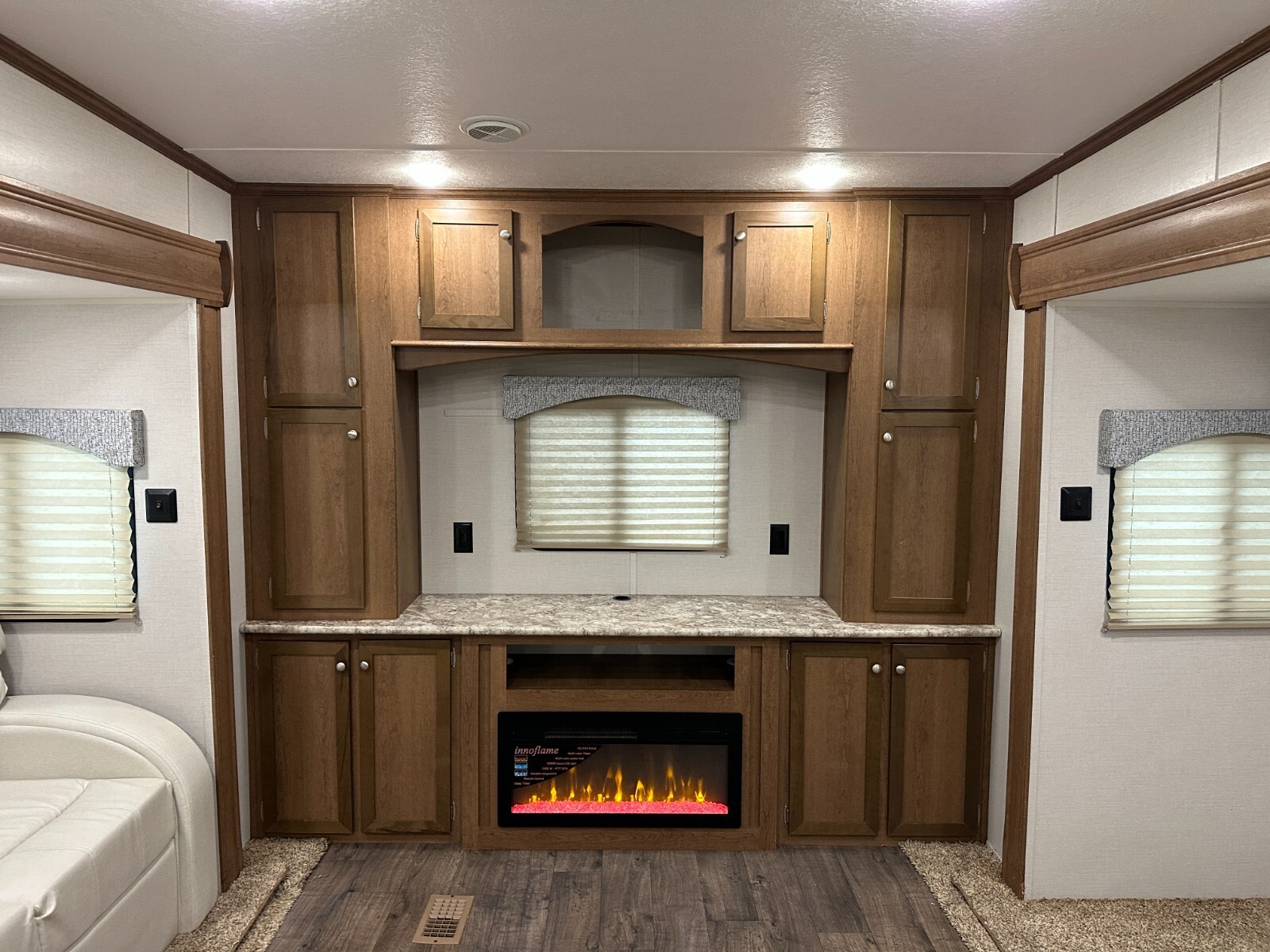 For sale is a 2024 Recreation By Design Monte Carlo Platinum Edition 41 fifth-wheel trailer. Thistrailer is a park model designed to be lived in, has threeslide outs, a kitchen peninsula, and plenty of living space is what you will find inside.It is 41 feet long, a GVWR of 15,240 lbs, Oneawning with LEDs, washer/dryer in bathroom closet, night window shades, wood interior, and much more. Inside features a large bedroom area in the front with a Queen bed. Extra large closet space with large full walkthrough bathroom has a spacious shower withtub.In the middle is the kitchen with large residential refrigerator, Residential style range, large pantry and a dining table for four.Living area in the rear with sofa bed, two recliners, fireplace and TV area. Trailer also has electric mid and rear stabilizing jacks and two A/C units.Please see over 150 pictures below.