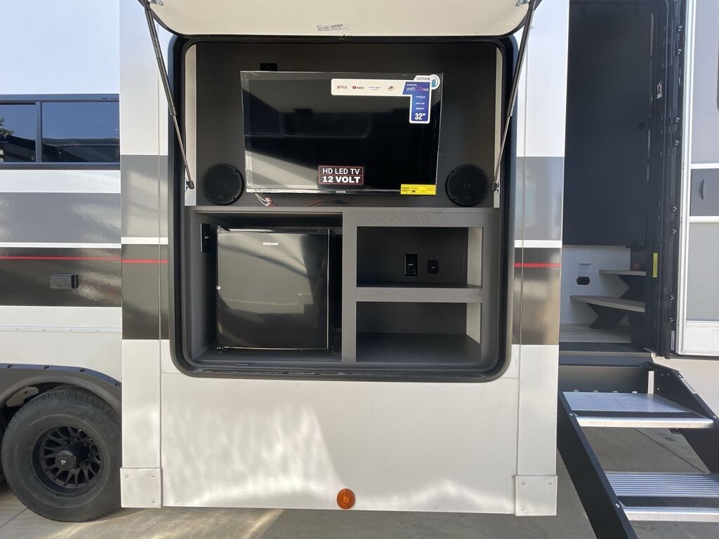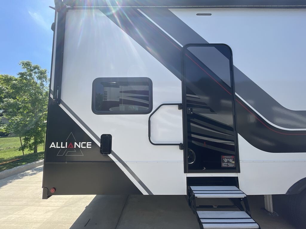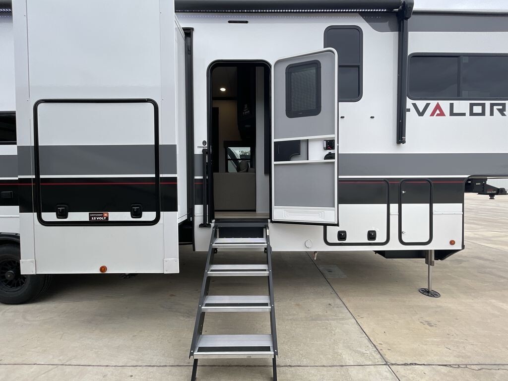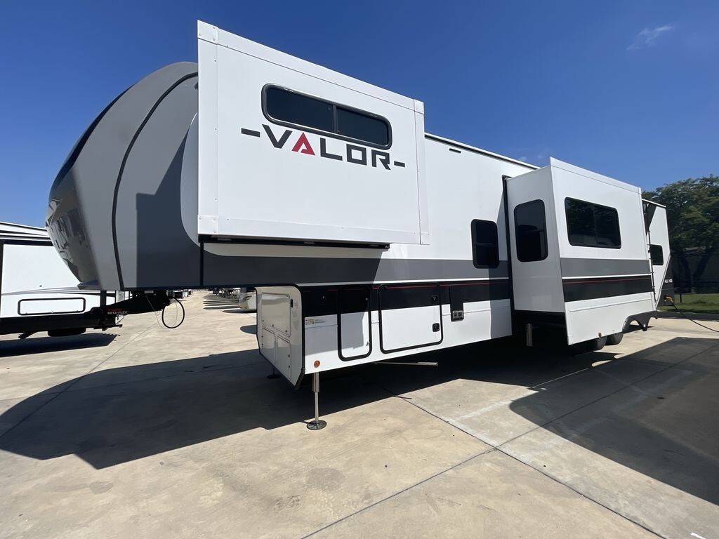 The 2025 Alliance RV Valor 40V13 is a top-tier toy hauler fifth wheel designed to meet the needs of both adventure enthusiasts and families seeking comfort on the road. Measuring 44.5 feet in length and 8.42 feet in width, this spacious RV offers ample room for living and storage.