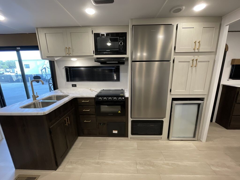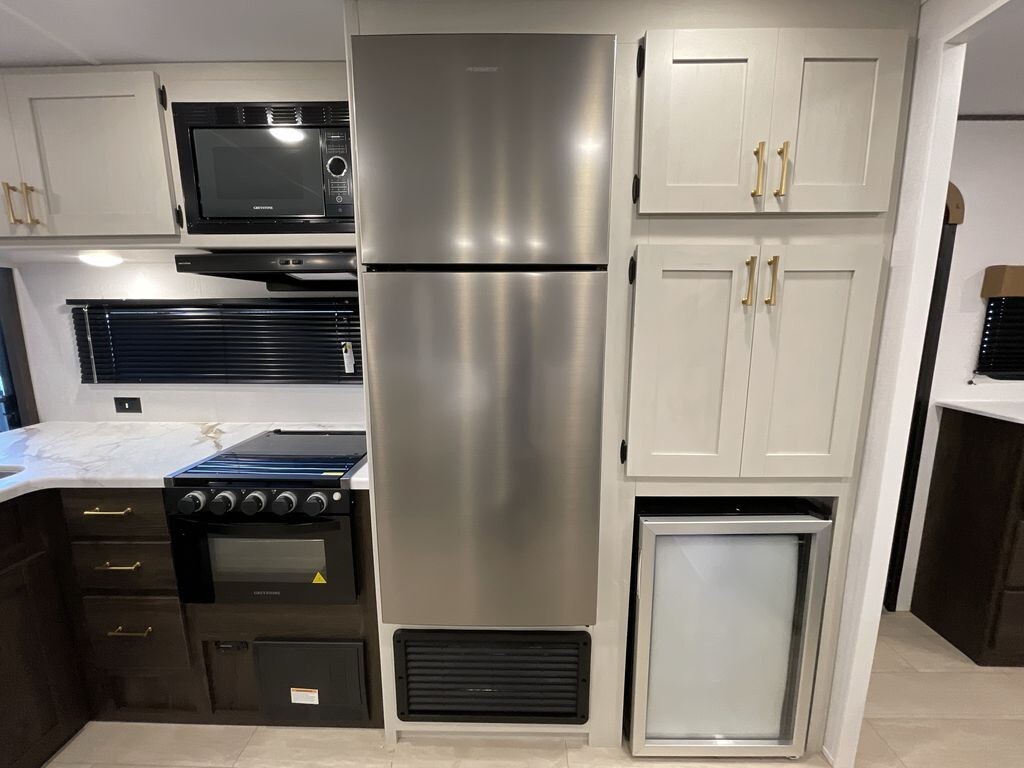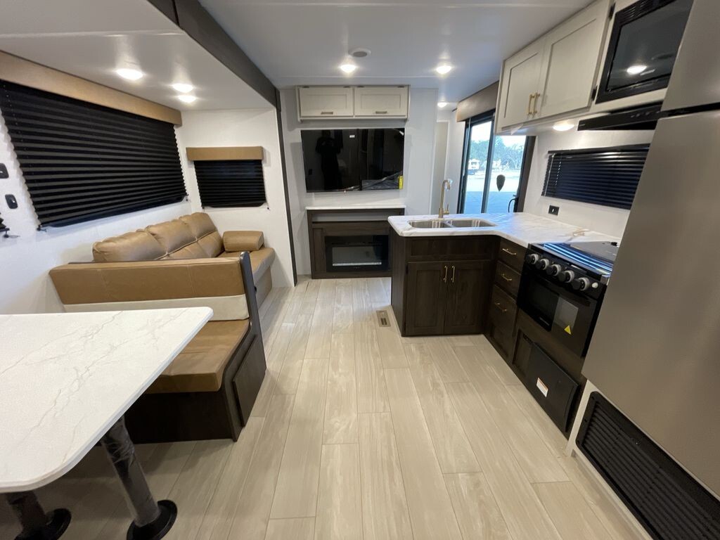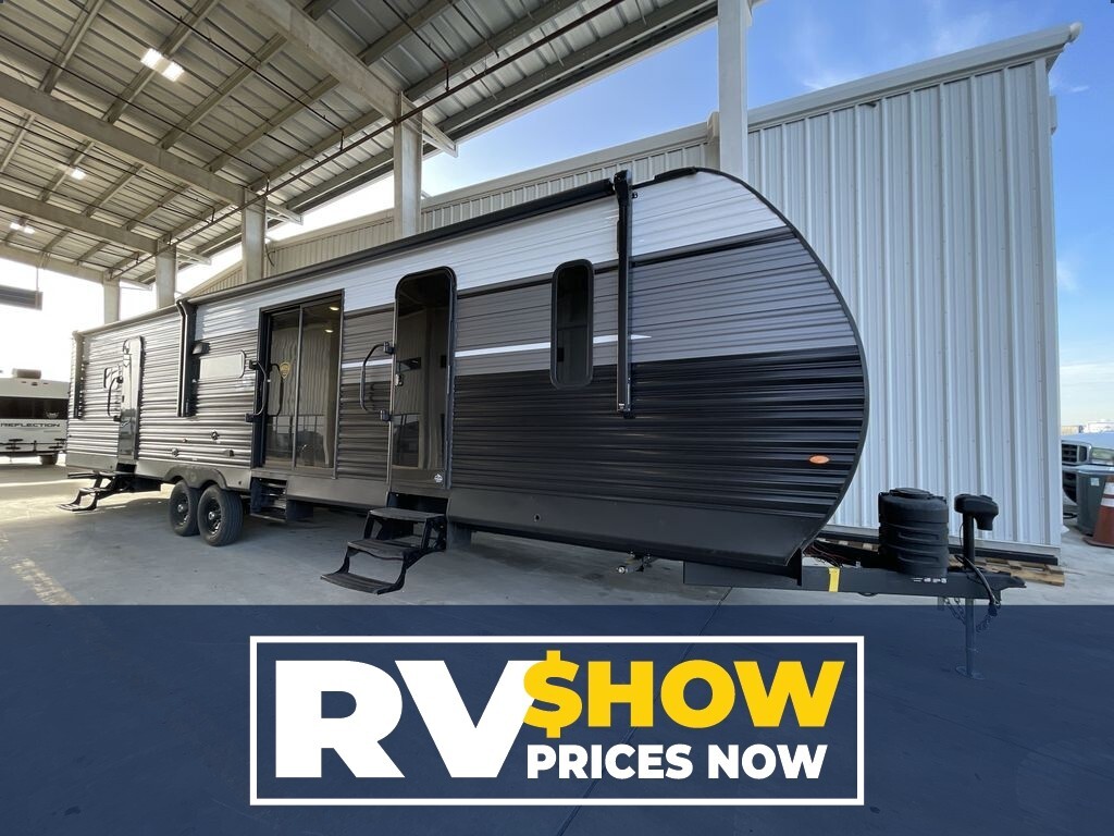 Introducing the Crossroads Zinger 390DB, a top-tier travel trailer crafted to enhance your camping adventures with exceptional comfort and convenience. This model offers a spacious layout, making it an excellent choice for families and groups seeking a home-like atmosphere on the road.The Zinger 390DB features two private bedrooms, each thoughtfully designed to provide restful retreats. The master suite includes a queen-size bed, ample wardrobe space, and direct access to a full bathroom equipped with a 30" x 36" shower. The front bedroom offers a king-size bed, a dresser, a front wardrobe, and washer and dryer prep, along with its own entrance to the second full bathroom, which includes a 34" radius shower.The living area is designed for relaxation and entertainment, featuring a comfortable 60" jackknife sofa and a 38" booth dinette, both perfect for gathering with family and friends. The entertainment center comes equipped with