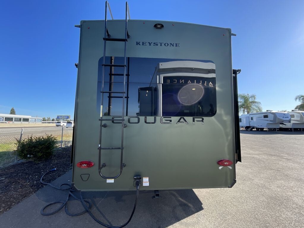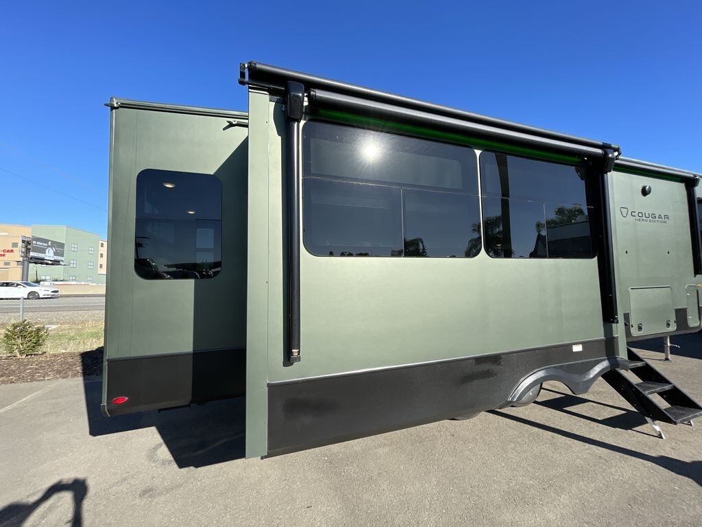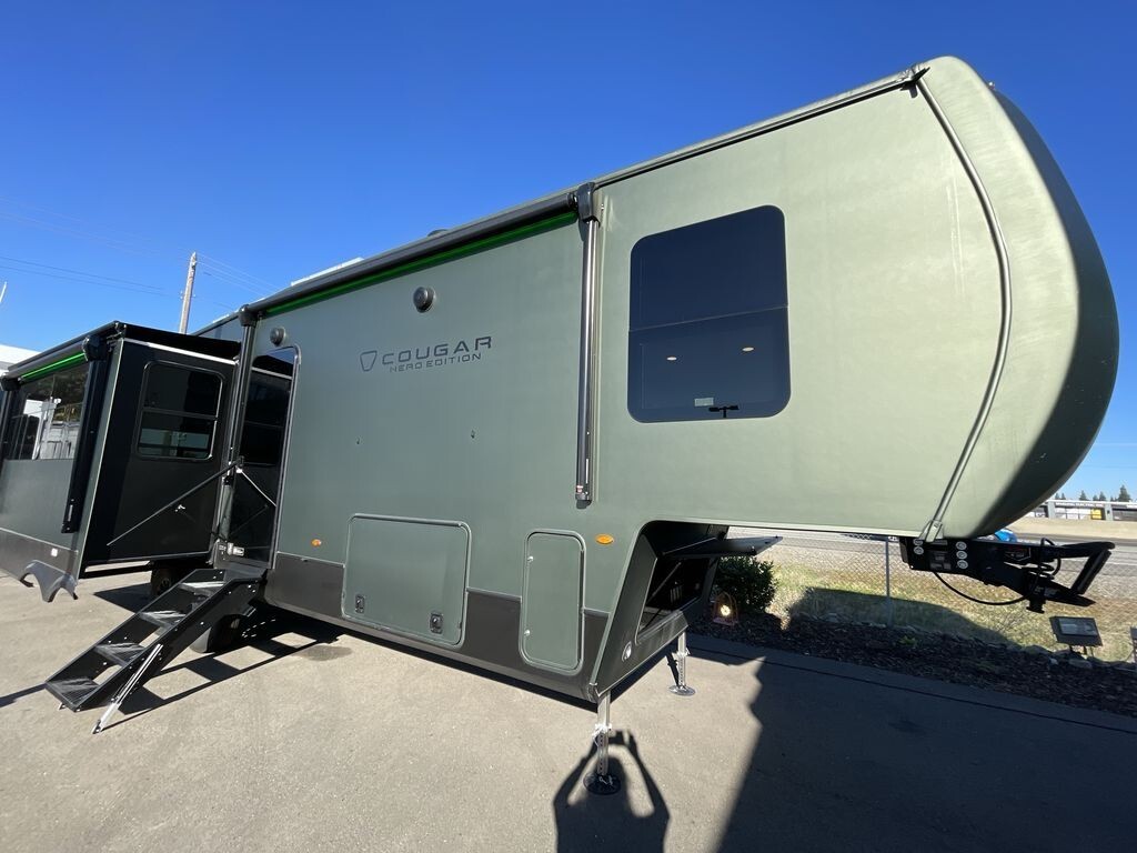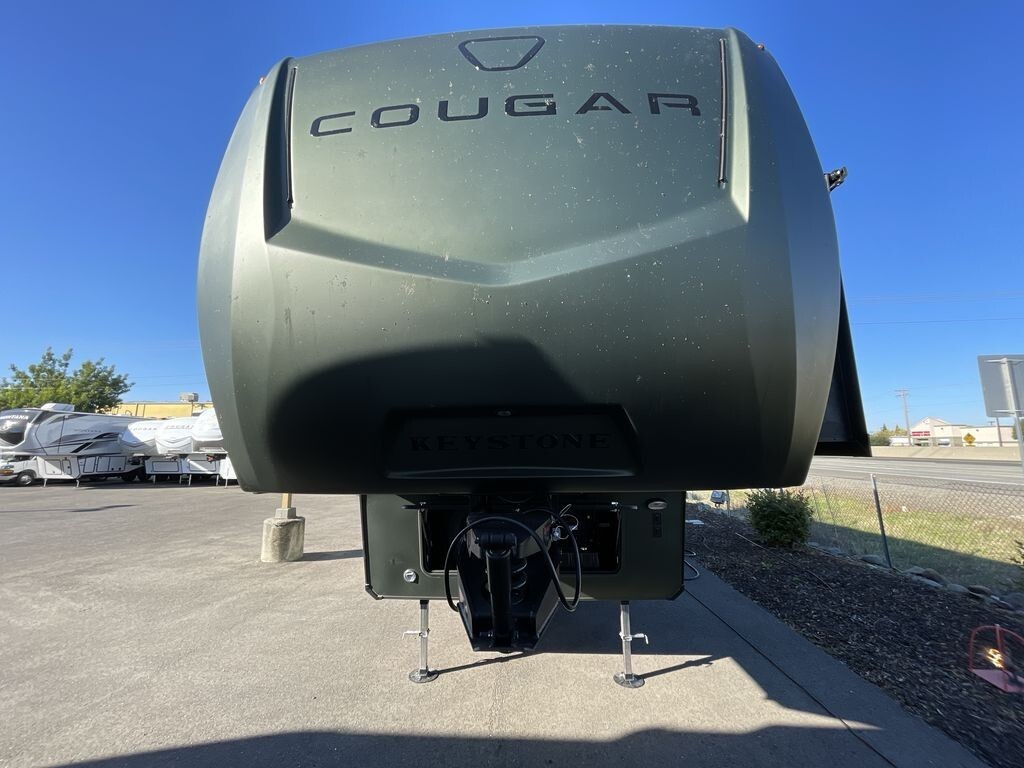 The Keystone Cougar 316RLS is a top choice for travelers seeking both adventure and comfort. This fifth wheel RV is designed with Keystone's attention to detail, offering a home-on-wheels that meets all your travel needs.On the exterior, the 316RLS features a sleek, aerodynamic profile that enhances towing efficiency. Its durable construction includes a fully laminated aluminum structure and weather protection packages, ensuring longevity and resilience against various weather conditions. An automatic leveling system simplifies campsite setup, allowing you to enjoy your surroundings without hassle.Inside, the spacious living area is both luxurious and inviting. The open floor plan with opposing slides maximizes interior space, while large panoramic windows provide natural light and stunning outdoor views. Comfortable seating includes theater-style recliners and a sleeper sofa, perfect for relaxation or