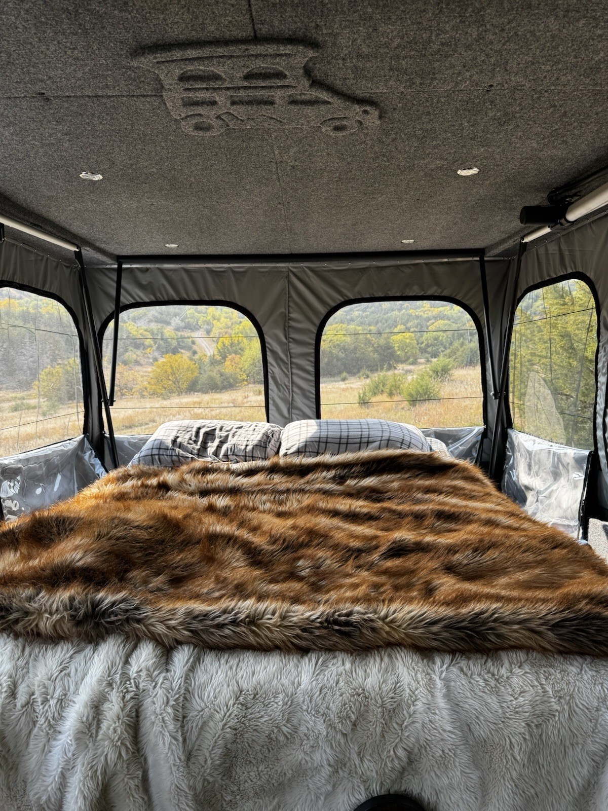 Second story designed and built by professional company Colorado Camper Van. Recently put new one on. Maybe two years ago. Cost 24k.