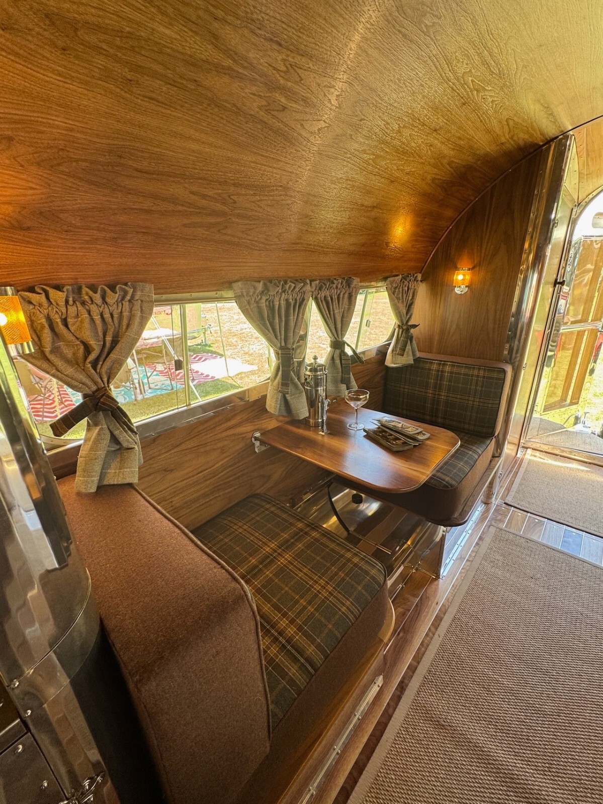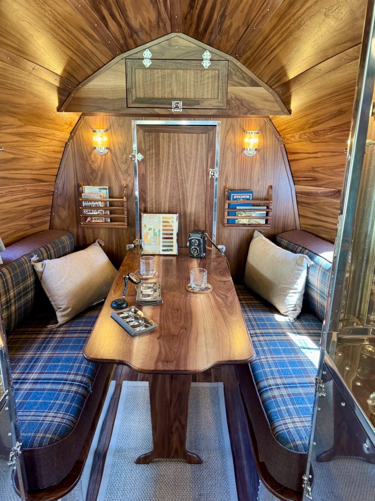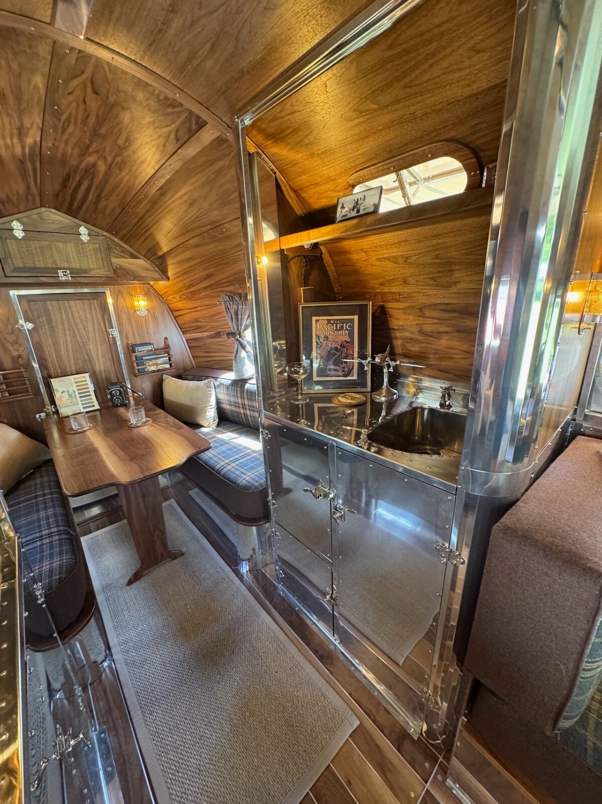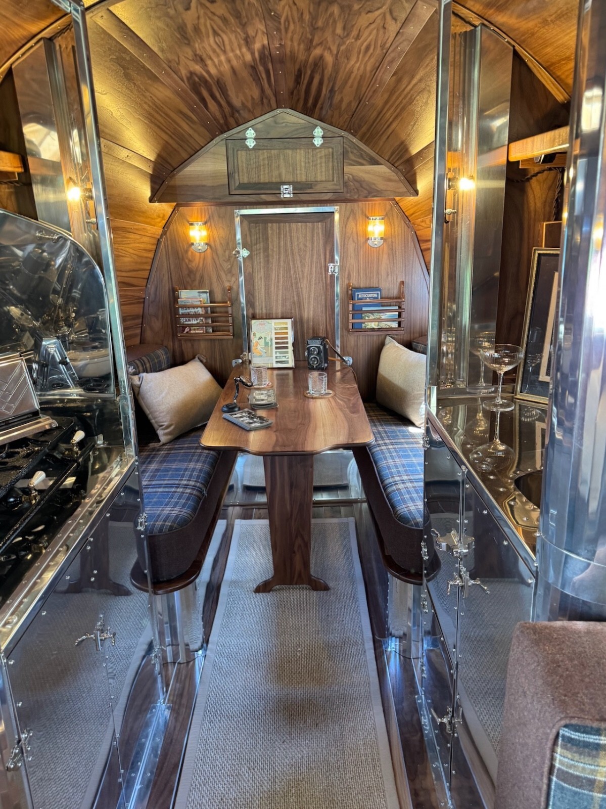 All of the materials used in the restoration from the real walnut, to the aluminum to the quality wool upholstery and window coverings were designed to create an elevated camping experience. Complementing the beauty of the great outdoors.