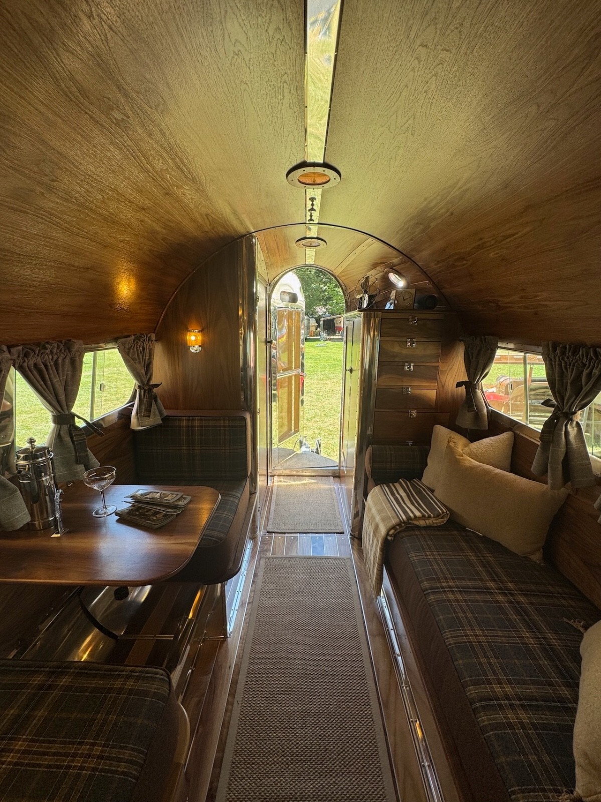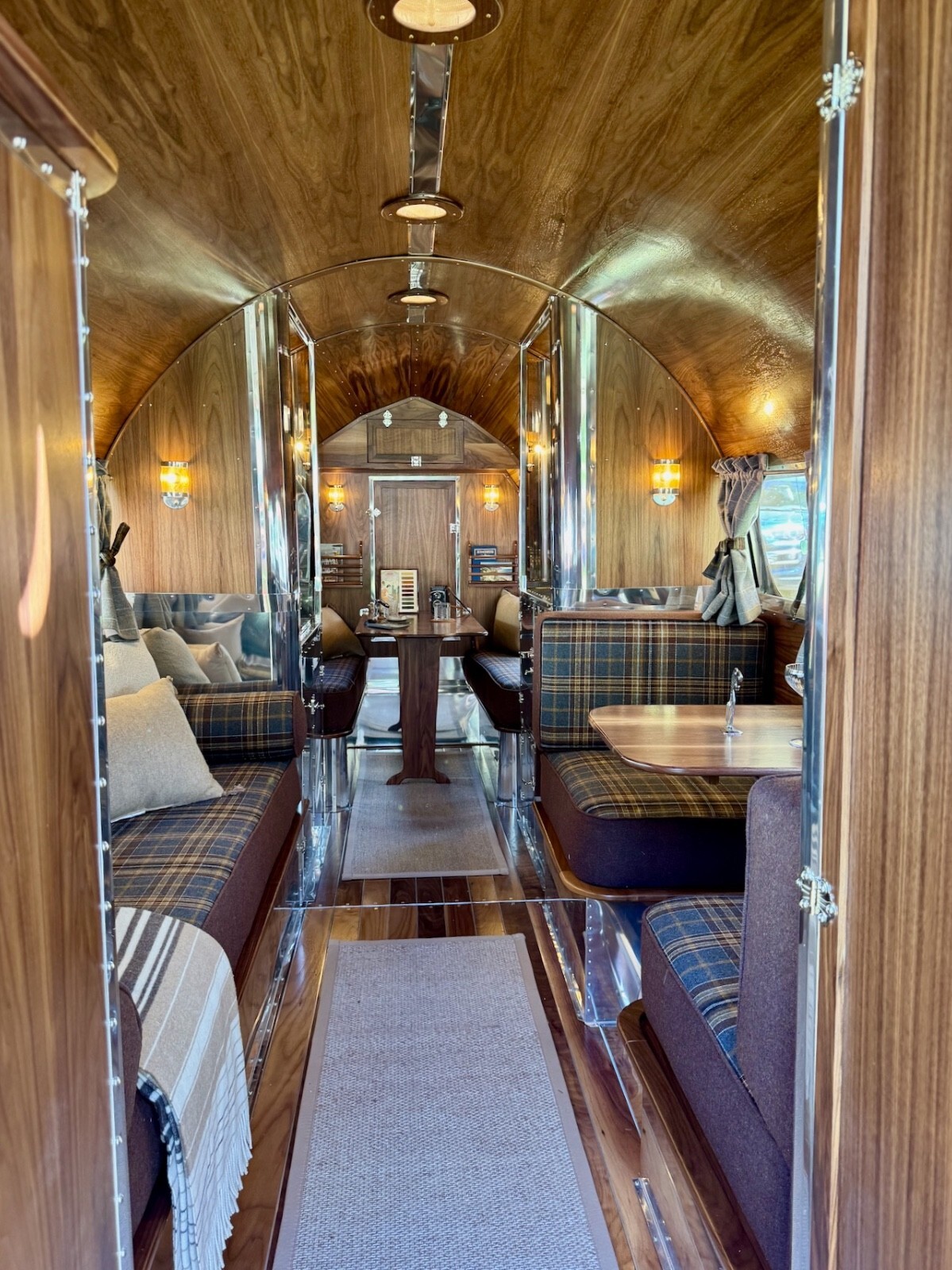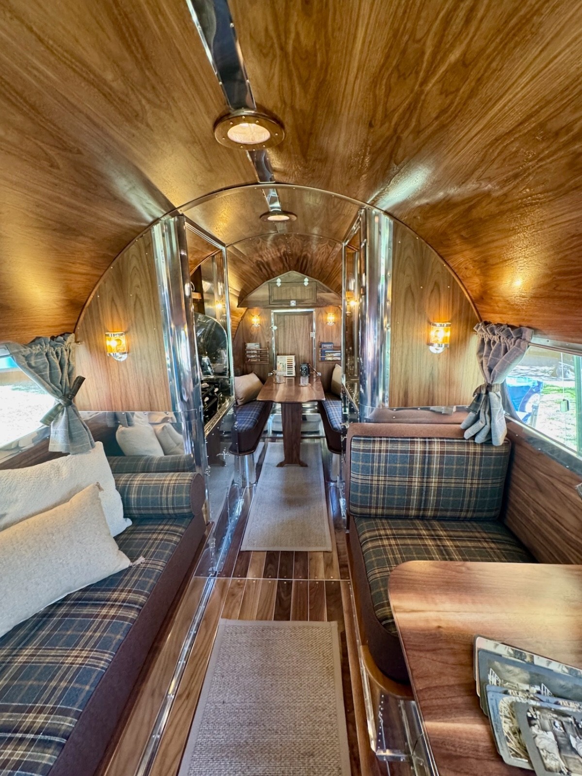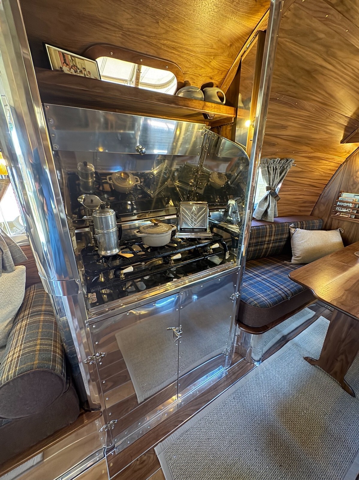 All of the materials used in the restoration from the real walnut, to the aluminum to the quality wool upholstery and window coverings were designed to create an elevated camping experience. Complementing the beauty of the great outdoors.