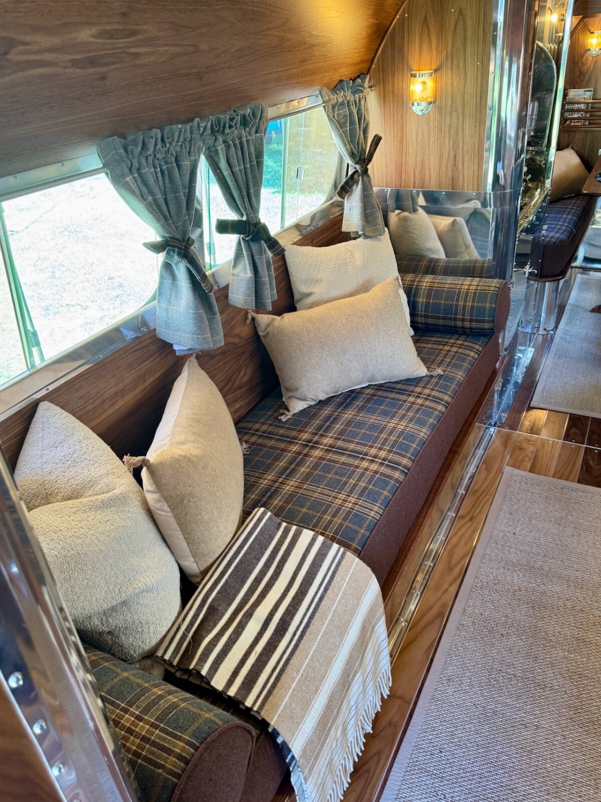 Luxurious wool plaid upholstery and high density foam help to create the timeless look of the interior and contributes to a comfortable, cozy and campy feel.