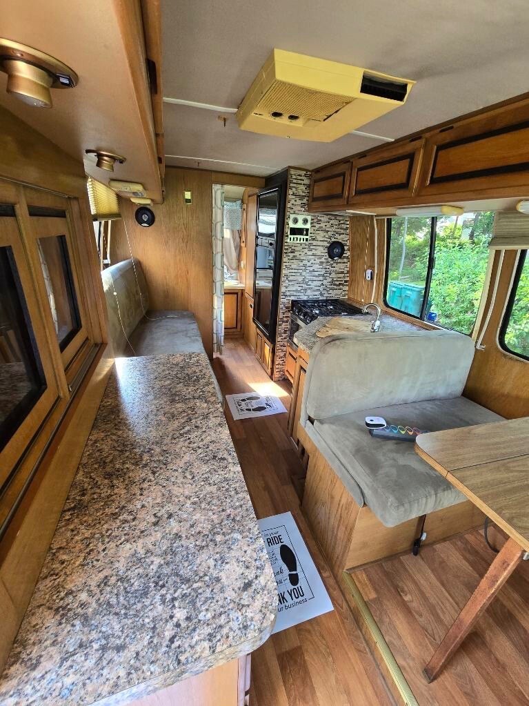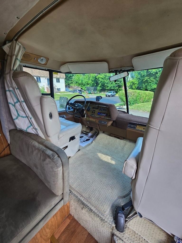 1977 GMC 23′ Transmode finished by Coachman Industries as a rear dry bath Birchaven. It has 85,600 miles on it but only about 1,000 on the newly rebuilt 403 Olds engine. The engine has Thorley Headers feeding a custom exhaust system. It’s all kept cool with the upgraded Aluminum Radiator. The rebuilt transmission is only a couple of years old. Includes an auxiliary electric fuel pump and a 5 belt Cadillac belt system.