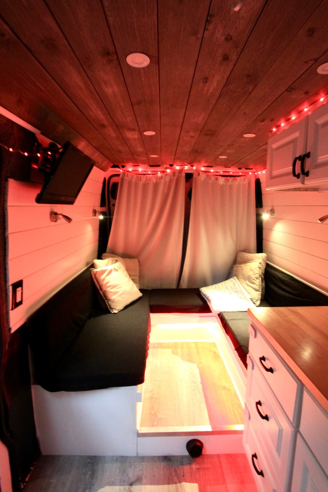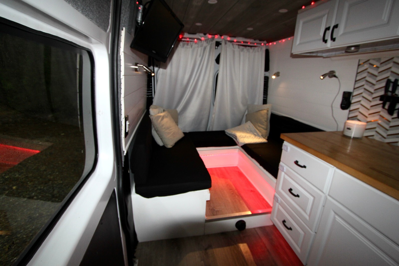 Built for full off-grid capability, van can charge via solar or simply while driving. Decorated as a true minimalist modern apartment on wheels. Convertible space with three modes: couch, table, bed. Large open space, options to add more design elements if desired. No issues, regularly serviced around every 3-5000 miles plus optional maintenance items, can provide all records and clean Carfax report.