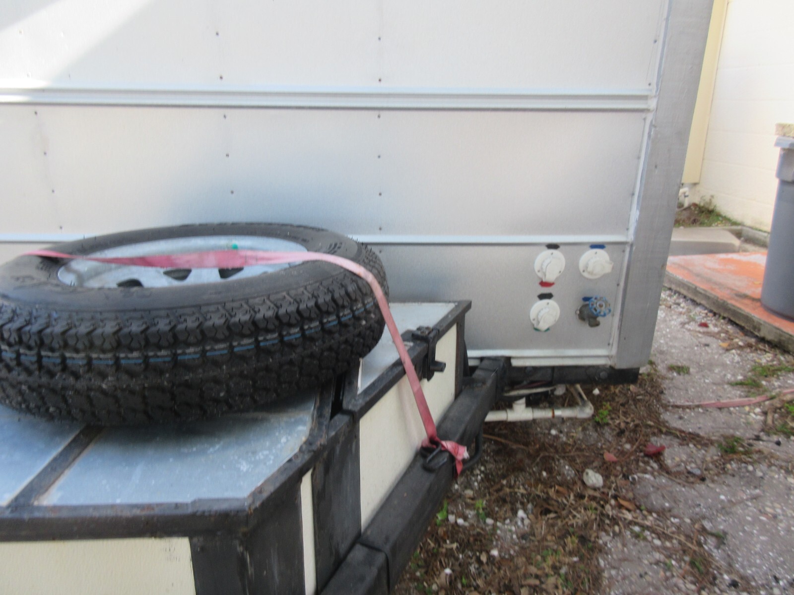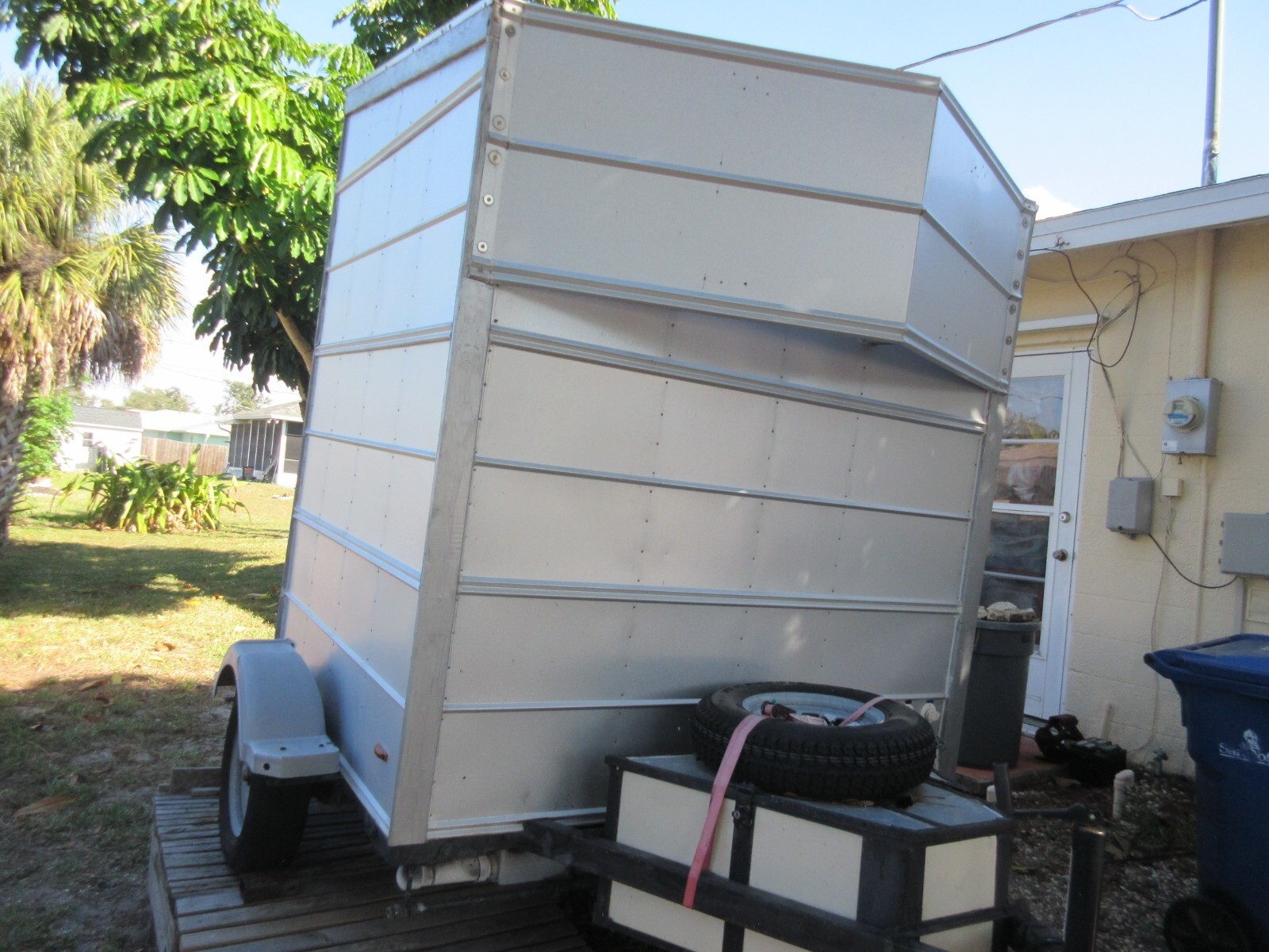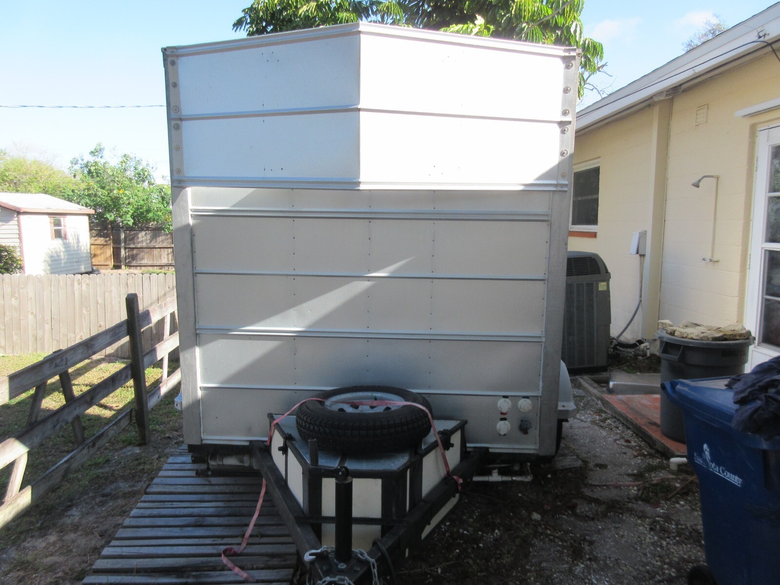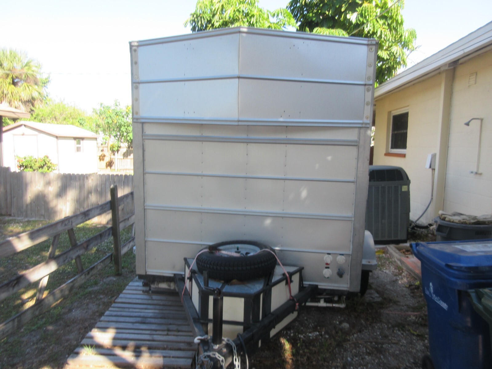 This is a Restroom Trailer that was built for volunteer efforts in the aftermath of Hurricanes, travel, camp, mud parks, and you could use it for tail gating. It features 40 gallons of fresh water, 38 gallons of Black water and 25 gallons of grey water. All tanks are thick plastic and are fully rinsible. There are hose fittings for each tank to add rinse water, then drain it. Head is a Raritan commercial macerating unit, elongated bowl with infinite water control, macerating pump, two factory flush settings, or hand flush by holding the button. There is a Raritan Purisan Hold and Treat waste treatment plant that chemically treats waste in the event of a disaster, or remote off grid. Use allows treated to be disposed in an approved sewer, dug swale or hole. It is set up to treat waste to a tested bacterial level of 26-30ppm with the acceptable safe level being 1000ppm. The sterilizing treating chemical (Purisan tablets) is adjustable. Black and Grey water get pumped out through a garden hose, fresh water has a gravity drain. The shower is an on demand hot water unit using those green 1 lb bottles of LP gas, you get 14 minutes of shower with tank water at 60 degrees. (24" x 27" shower pan) There is usually a gas little left. You can buy those bottles of LP gas at many more locations than attempting to find a place open to fill a larger LP gas tank in a disaster. The shower, pump, and on demand water heater is set up for one gallon per minute, and is adjustable. There are towel racks. Pull valves that allow you to direct what tank gets pumped out or filled without going under the unit. There is a sink, & mirror. All lighting is LED. Seelevel !! 4 tank monitor system. All controls for the head, water heating, pumps, lights air blower fan are push button, or switched. There is a water hose bib on the front. The 300 watt solar panel (it has a few more years left, just keep it clean) 2 -100 amp hour lithium ion batteries with very few cycles (less that 1 dozen). Garden hose storage in the rear bumper. There is a 23 quart fridge included. Storage shelves. Additionally equipped with a 1500 watt inverter with one 120 volt plug outside and one inside. There are 12 volt sockets and a USB port. This unit was built to commercial standards so it would work reliably in a disaster situation. It comes with a full operations description. This unit is not insulated for freezing. Pick up in Venice Florida or I can assist helping to ship it, at buyers expense I don't have a weight, before I added liquids it was around 500 LBs I have towed it with a 4 cylinder vehicle with ease. Tires have a lot of life left, There is a spare tire. The lockable storage up front is split. small side is very open as it houses the LP gas bottle and a back up. The other side storage houses the batteries, inverter and misc hoses & parts. The exterior is galvanized steel, with a wind foil. There is a small tempered glass window with a screen that is operational. Actual unit without the tongue and bumper is 6'4" x 5'. I will provide a bill of sale for plates if needed. Ask questions, Sale as-is and final.