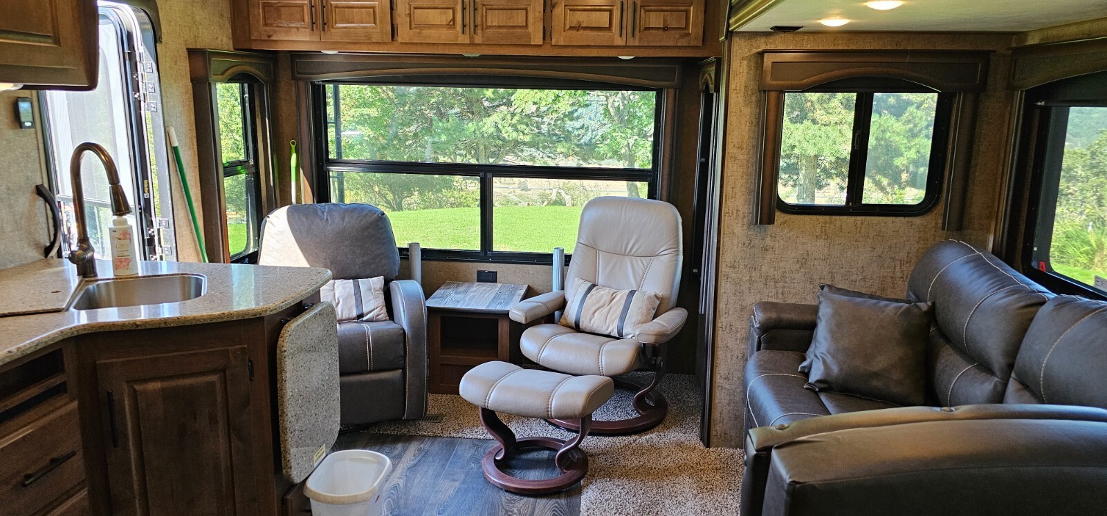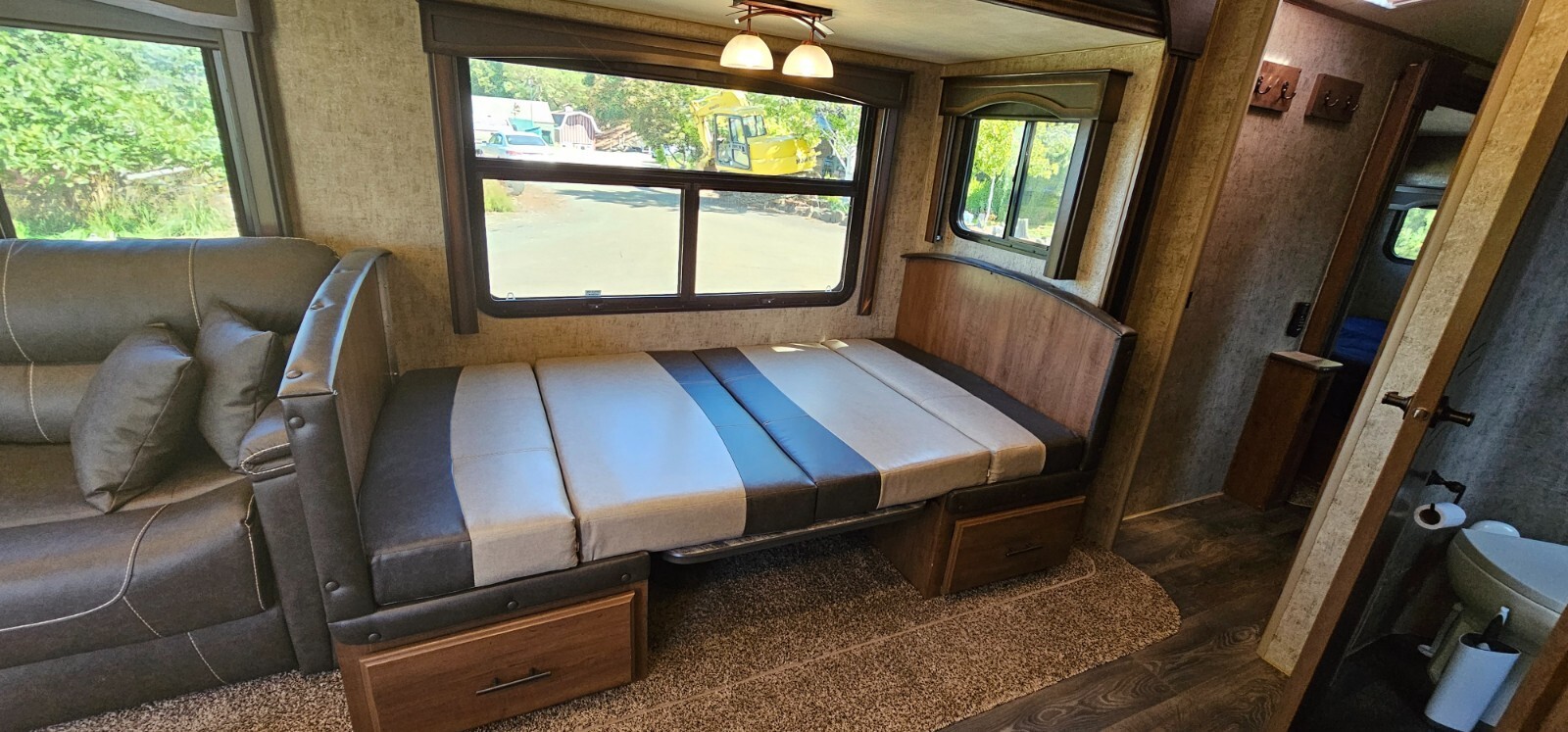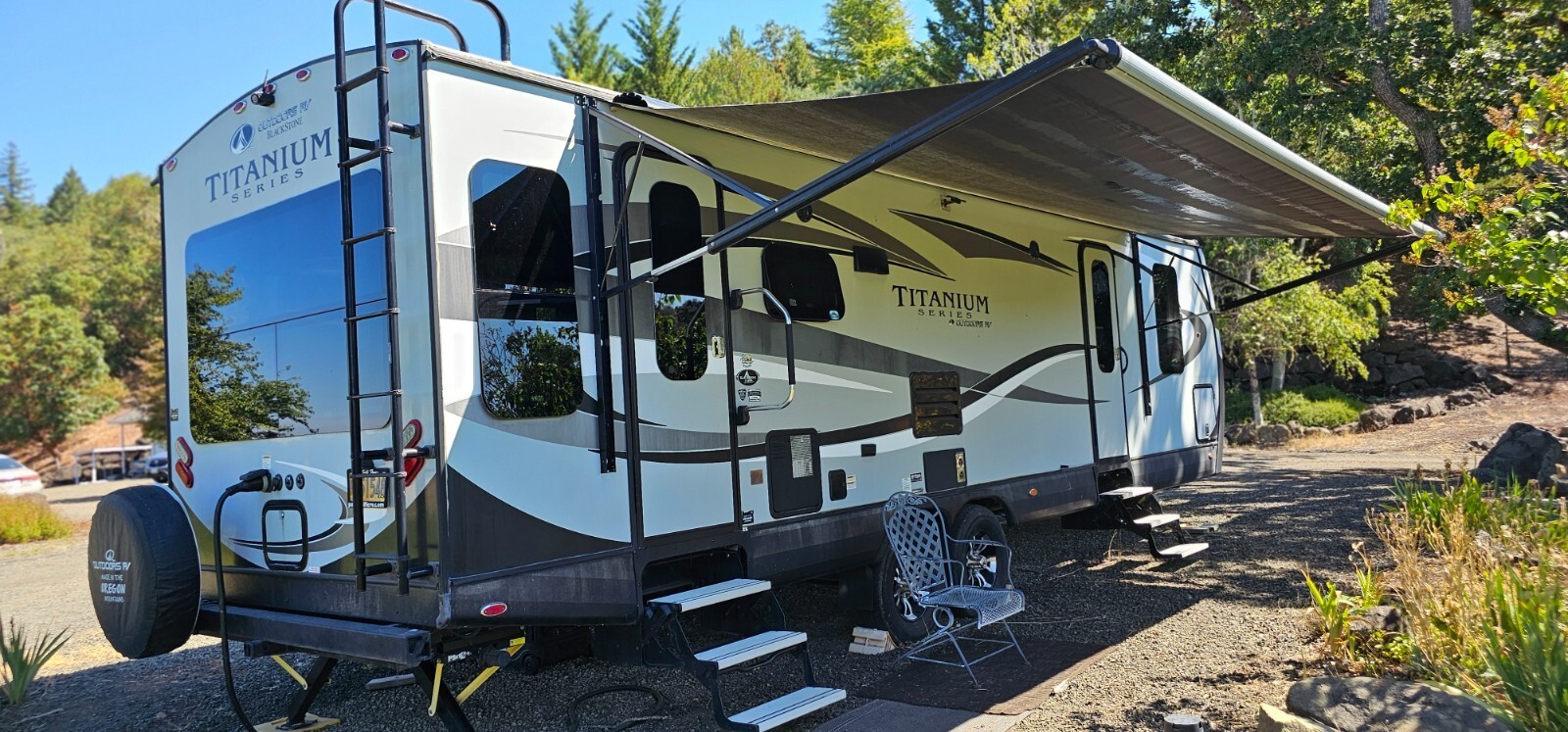 2019 Like new, barely used, clean and well-maintained trailer. It has all the bells and whistles! Rear view camera, solar power, generator, huge electric awning, LED lighting, heated holding tanks, thermal pane windows, sleeps 6, queen bed, 2 double beds, recliner, big refrigerator/freezer, microwave, extra flip-up counter in kitchen, 80 gallons of fresh water, 40 gal grey water tank, 50 gal black water tank, 60 gal propane, air conditioning/heating, 10 ply Goodyear endurance tires, two electric slide outs, electric stabilizers, huge luggage compartments, two TVs, a sound system for inside and outside, an outdoor shower, three electric ceiling fans-two can be set for auto-temperature control, easy fold up stairs with flip-out handle by front door, skylights, rear ladder for easy roof access, big closet, lots of storage, inside and out. Great for a weekend getaway, snowbirds, or year-round travel. Built in La Grande, Oregon with insulation to take the cold or heat. You must see it to appreciate it. All ready to hook up and drive off.