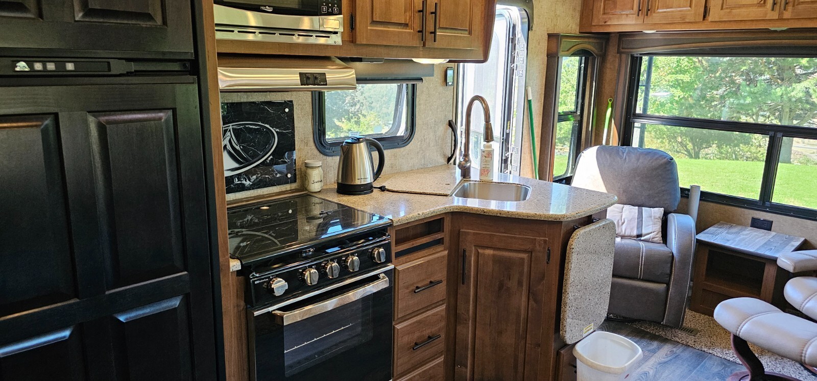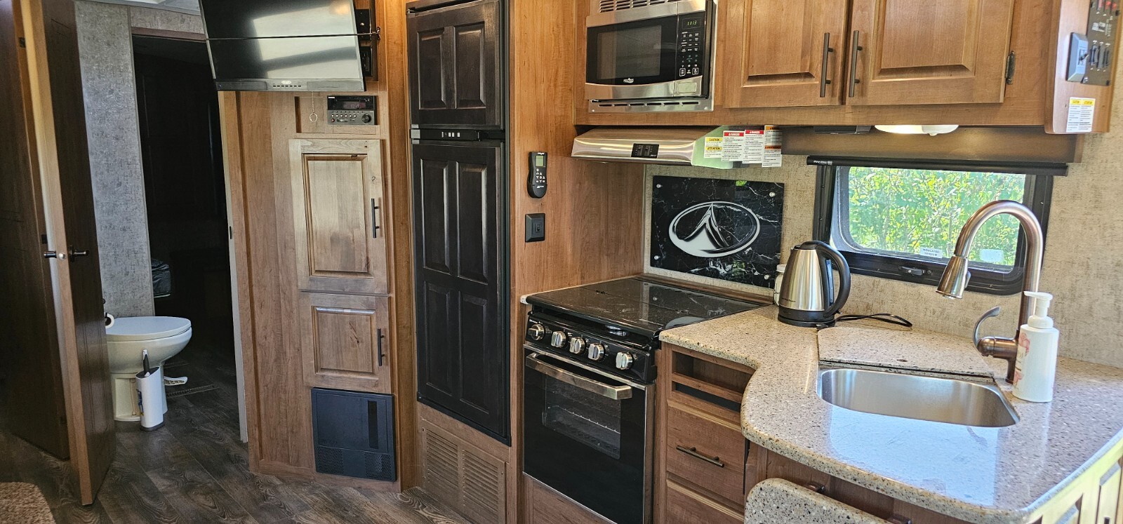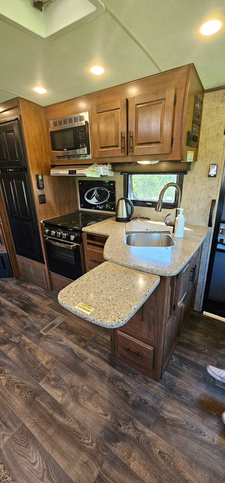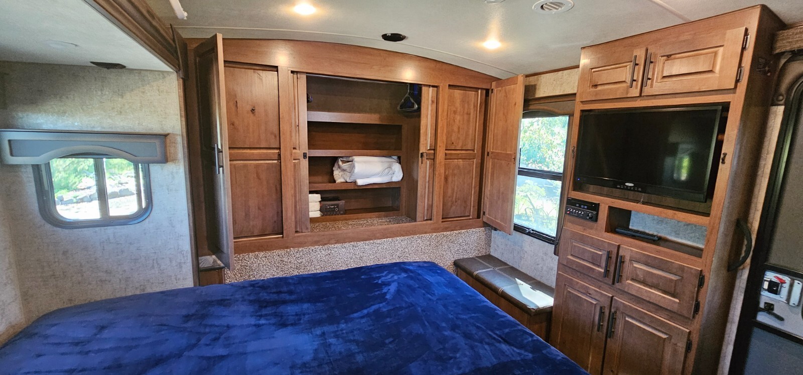 2019 Like new, barely used, clean and well-maintained trailer. It has all the bells and whistles! Rear view camera, solar power, generator, huge electric awning, LED lighting, heated holding tanks, thermal pane windows, sleeps 6, queen bed, 2 double beds, recliner, big refrigerator/freezer, microwave, extra flip-up counter in kitchen, 80 gallons of fresh water, 40 gal grey water tank, 50 gal black water tank, 60 gal propane, air conditioning/heating, 10 ply Goodyear endurance tires, two electric slide outs, electric stabilizers, huge luggage compartments, two TVs, a sound system for inside and outside, an outdoor shower, three electric ceiling fans-two can be set for auto-temperature control, easy fold up stairs with flip-out handle by front door, skylights, rear ladder for easy roof access, big closet, lots of storage, inside and out. Great for a weekend getaway, snowbirds, or year-round travel. Built in La Grande, Oregon with insulation to take the cold or heat. You must see it to appreciate it. All ready to hook up and drive off.