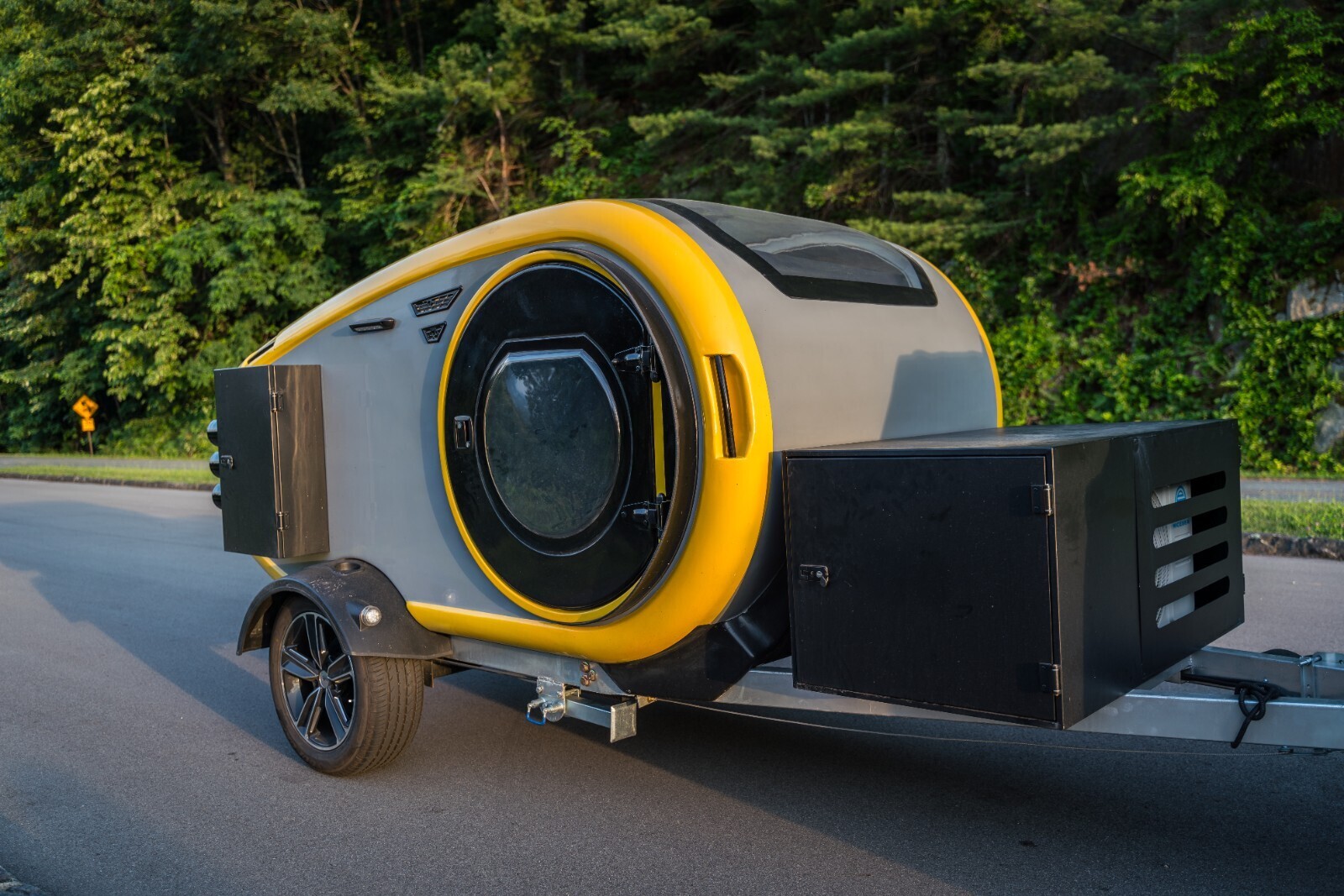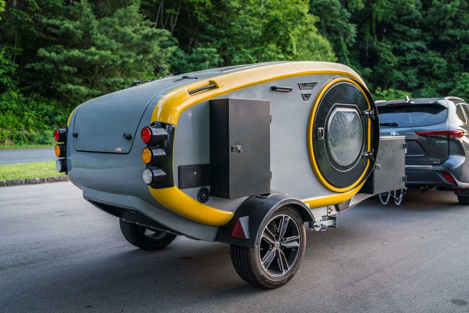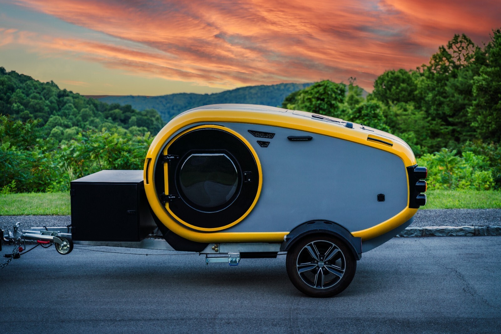 Brand new Tang Teardrop for Sale. This is a fully loaded Fiberglass camper with all the bells and whistles. Weight is approximately 1200 Pounds, Queen Size Bed, Memory foam mattress, Heat Pump with AC/Heat, Galley Kitchen, 200 watt solar built in, glass Skylight, hot water heater, outside shower, and more.