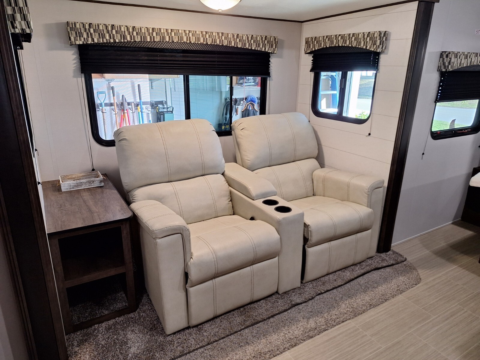 Features include:Sway control/leveler, TPMS, Rearview camera, Power awning, Goodyear Endurance tires 5k miles, Dual 20lb propane.