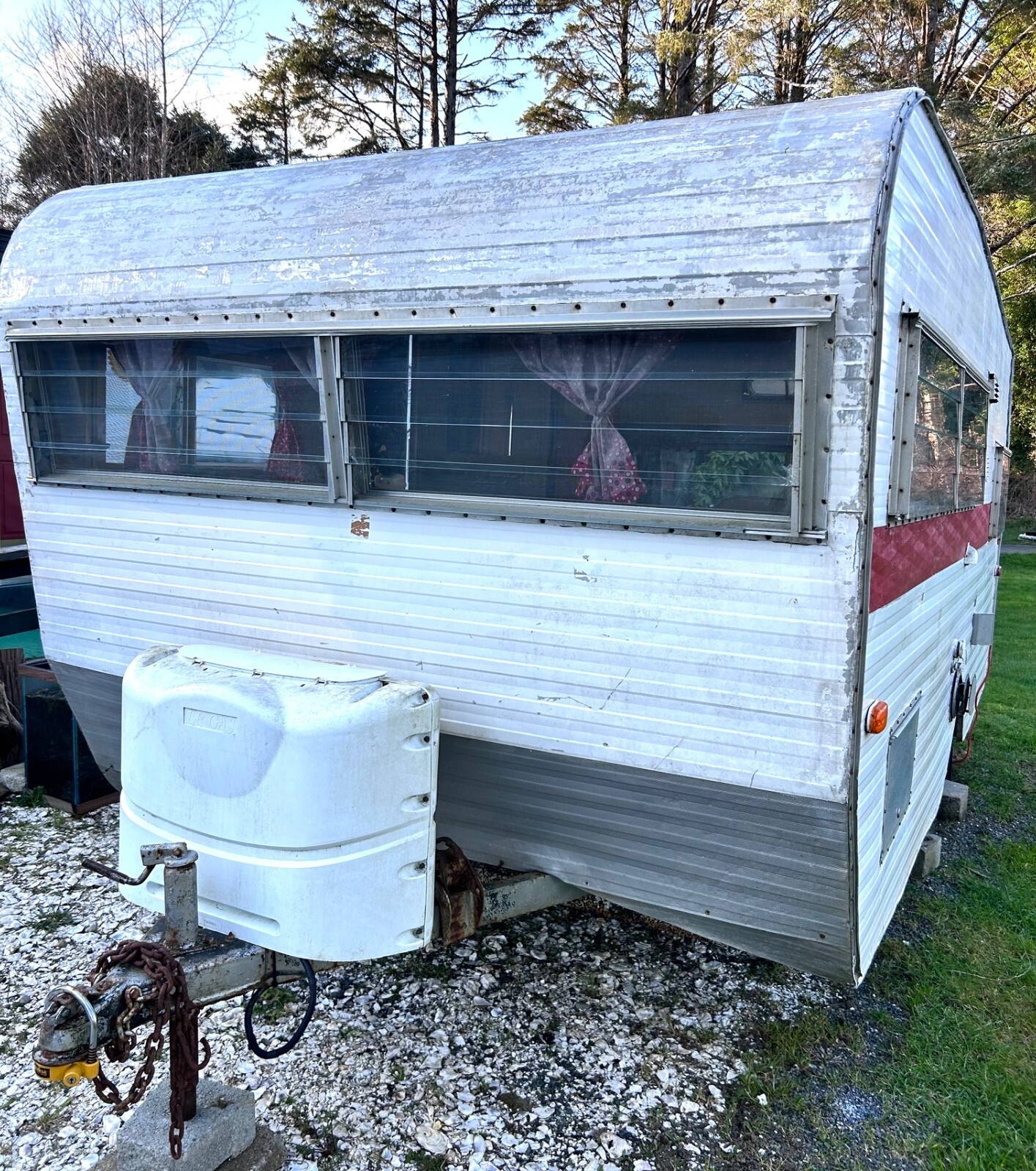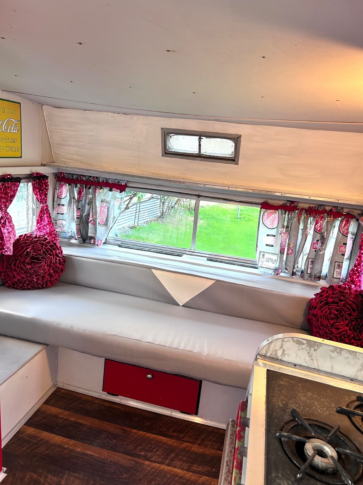 Price is firm.Priced to sell‼️Photos DO it justice. This needs TLC. Brand new tires with receipts, brand new roof coated, the floor is high-quality with no soft spots, electrical works, I do not know about the other appliances. The upholstery is beautiful but the back sides need love.Yes this has leaked. There is wood damage throughout but mostly along the corners, the front area under the table and behind the cushions at the dinette. Hence the price. Window panes were missing which have been replaced. The door still needs work. The parts are there, but it needs to be put back together, adjusted, needs glass. Totally drivable as is. This only weighs approximately 2500 pounds. It has two propane tanks with the RV cover.This includes a beautiful, gorgeous, fabric awning. Needs cleaning, along with the curtains.This is too cute to give up on. All of the Coca-Cola items stay with the trailer.I will not answer a bunch of questions. Must see to appreciate. Needs love, but I did a lot myself.Clean Oregon title.Selling as is. The $500 deposit is nonrefundable. Seller recommends buyer to check out trailer prior to purchase.