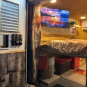 • Comfortable Sleeping Space: Includes a mattress, pillows, and space for two adults (or an adult and kids). • Climate Control: Built-in 110V air conditioner for those hot summer nights – just plug into shore power. • Entertainment Ready: Comes with a 24-inch TV mounted inside and string lights for cozy evening vibes. • Professional RV Doors and Windows: Secure, high-quality RV-style side doors and sliding windows for ventilation and light. • Rear Galley Storage: • Space for a cooler, multiple cooktops, water jugs, and other camping gear. • Two-level shelving for organized storage of backpacks, cookware, and food. • Perfect for setting up a portable kitchen or coffee station on the road. • Trailer Included: Built on a modified Harbor Freight trailer frame, already fitted and ready to tow. • Lightweight & Easy Towing: Simple to move around, even by hand when unhitched.