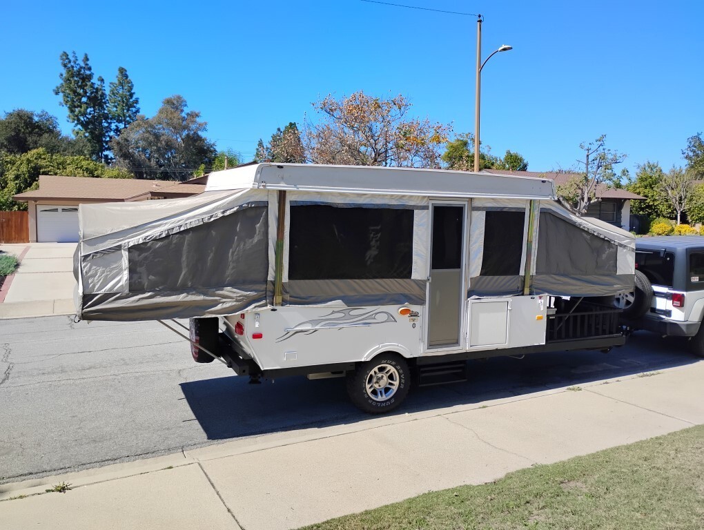 Sleeper dinette with table that can set up outside.Kitchen sink, tub/shower area with cartridge flush toilet.Wind down corner jacks.New power ceiling vent, in/out.Outside shower.