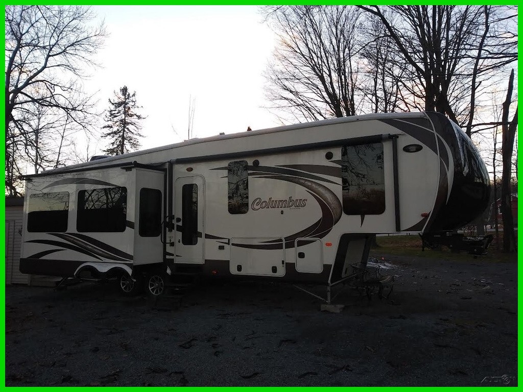 2016 Palomino Columbus 340RK Fifth Wheel For Sale in Schuylerville, NY 12871 This Palomino has an overall length of 37.67 feet and comes equipped with 3 power-retractable slide-outs, a 16-foot power awning, 2 A/C units, an outdoor entertainment system, and plenty of room to sleep 4. This unit has been well-maintained. Kitchen/Living Area Features 3-Burner Stove/Oven Overhead Fan Microwave Mid-Size Fridge/Freezer Sink & Faucet Pantry/Storage Space Table & Chairs Sleeper Sofa Theater Seating&