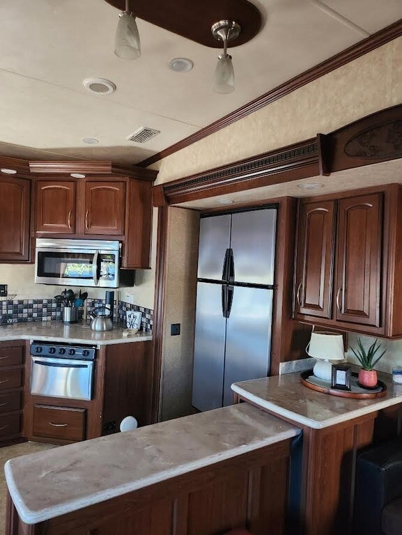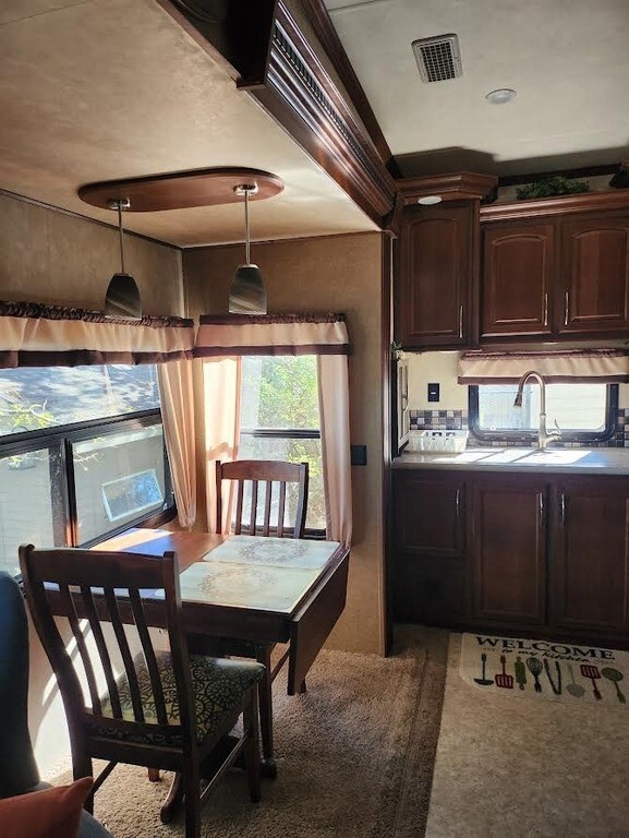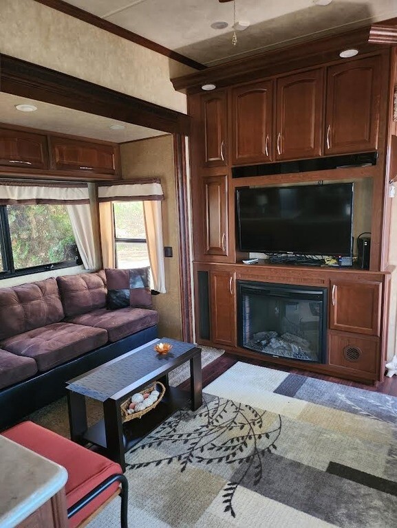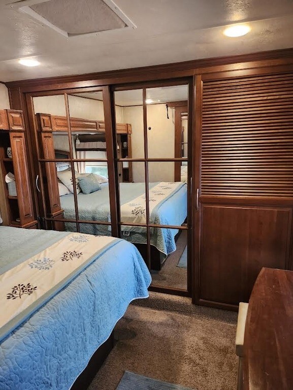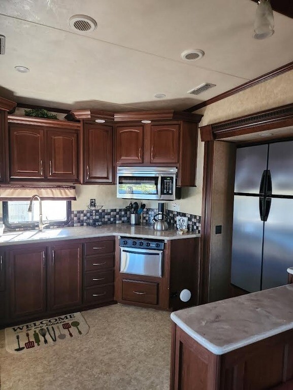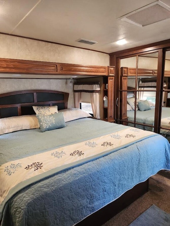 This Palomino has an overall length of 37.67 feet and comes equipped with 3 power-retractable slide-outs, a 16-foot power awning, 2 A/C units, an outdoor entertainment system, and plenty of room to sleep 4. This unit has been well-maintained.