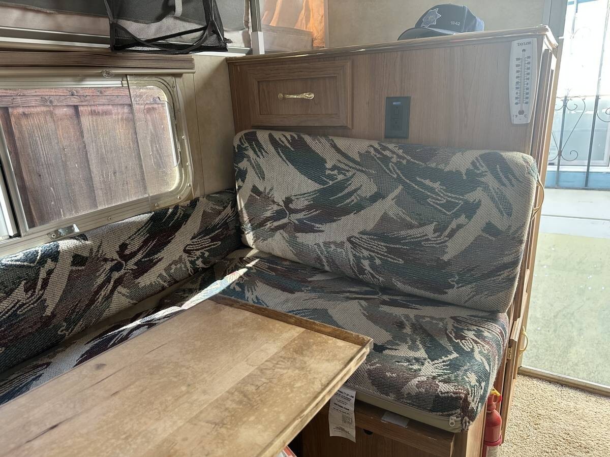 THESE FEATURES and MORE 3-Burner Stovetop Microwave Compact Fridge Sink & Faucet Hot Water Lots of Storage Space Some Modifications for Convenience Pedestal Table w/ Bench Seating Closet for hanging clothes Queen-Size Bed Outdoor Shower with Curtain Rod Overall Exterior Length: 12' 10" Floor Length: 8' 0" fits fine on a 6ft in. bed when the tailgate is down. Exterior Width: 7' 2" Wheel Well Width: 48"