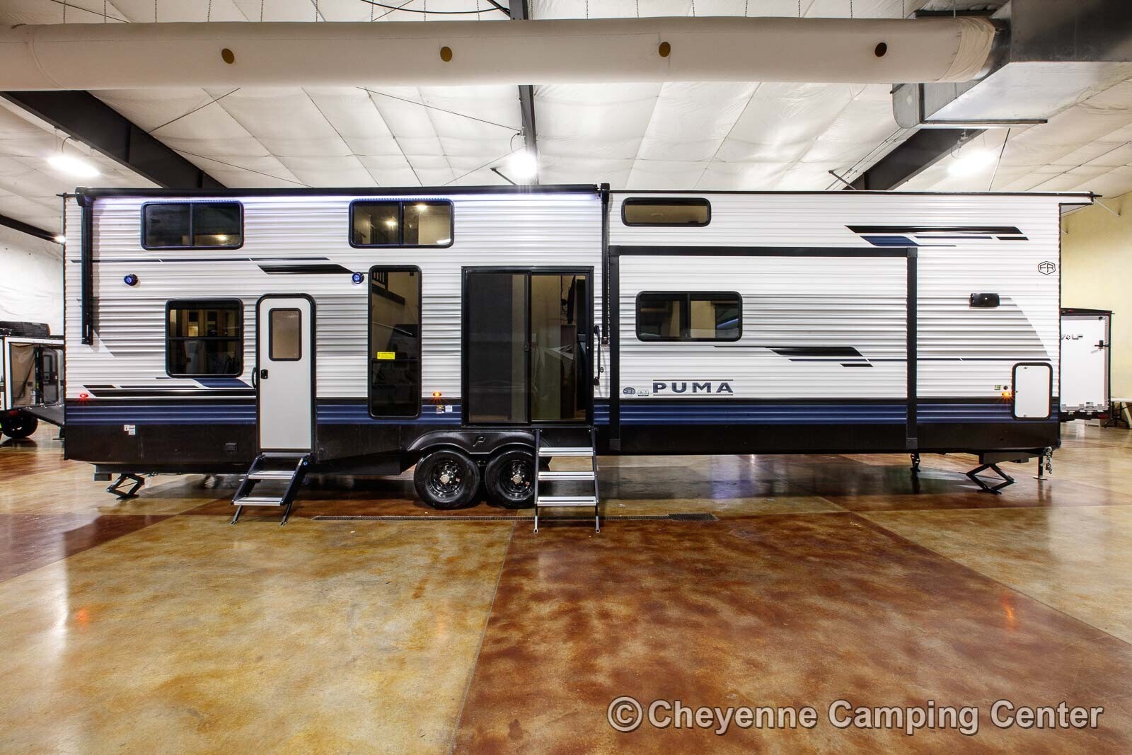 Other features include LED lighting, roller shades, power shades on the upper windows, a one-year manufacturer’s warranty, and more! Make this Puma 403LFT destination trailer for sale at Cheyenne Camping Center your affordable second home today!