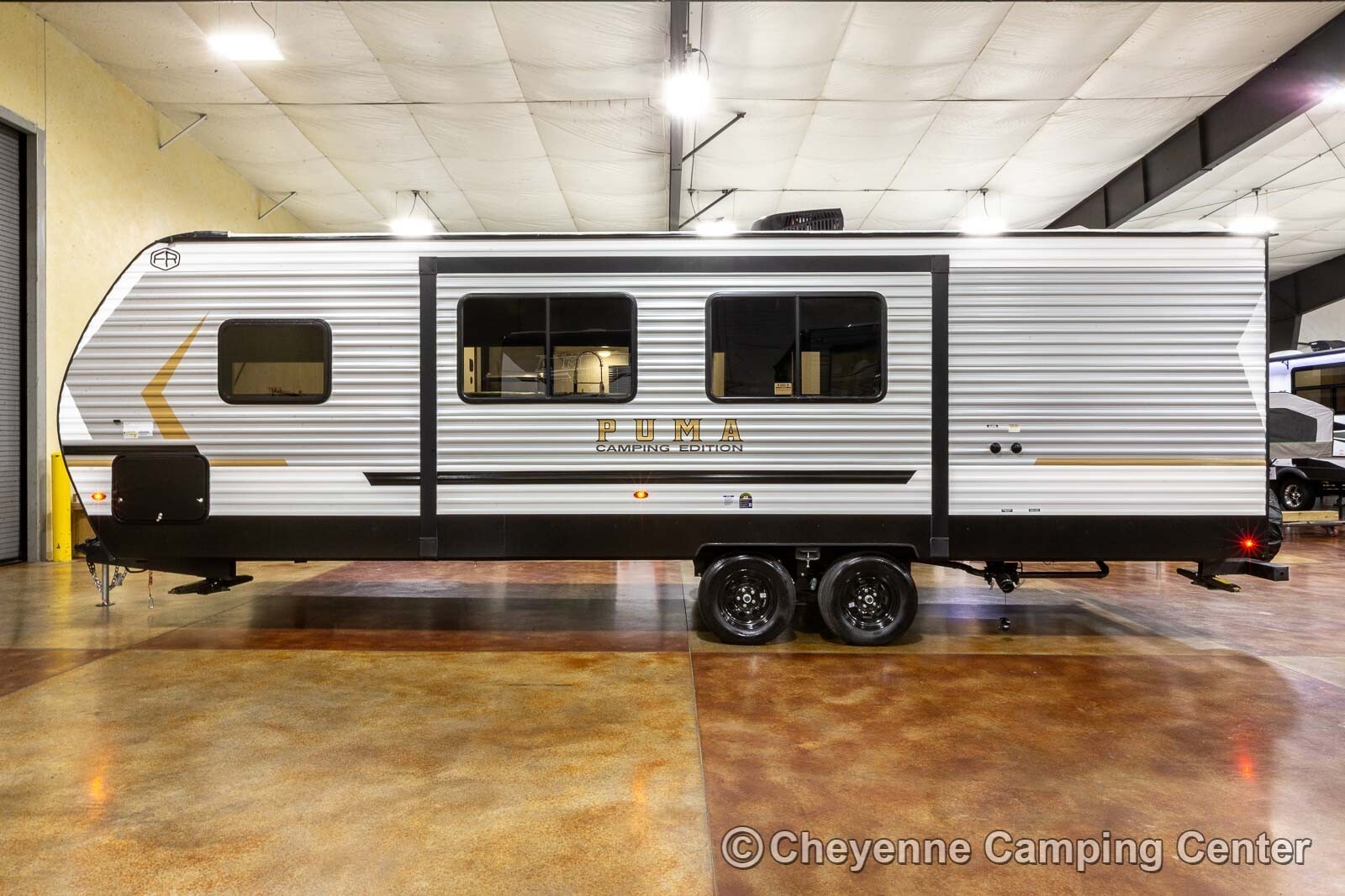 The Puma Camping Edition 283BHCE for sale at Cheyenne Camping Center is the perfect affordable, well-equipped, bunkhouse travel trailer. Come see it today at our store in Walcott, Iowa, right off I-80 at exit 284.