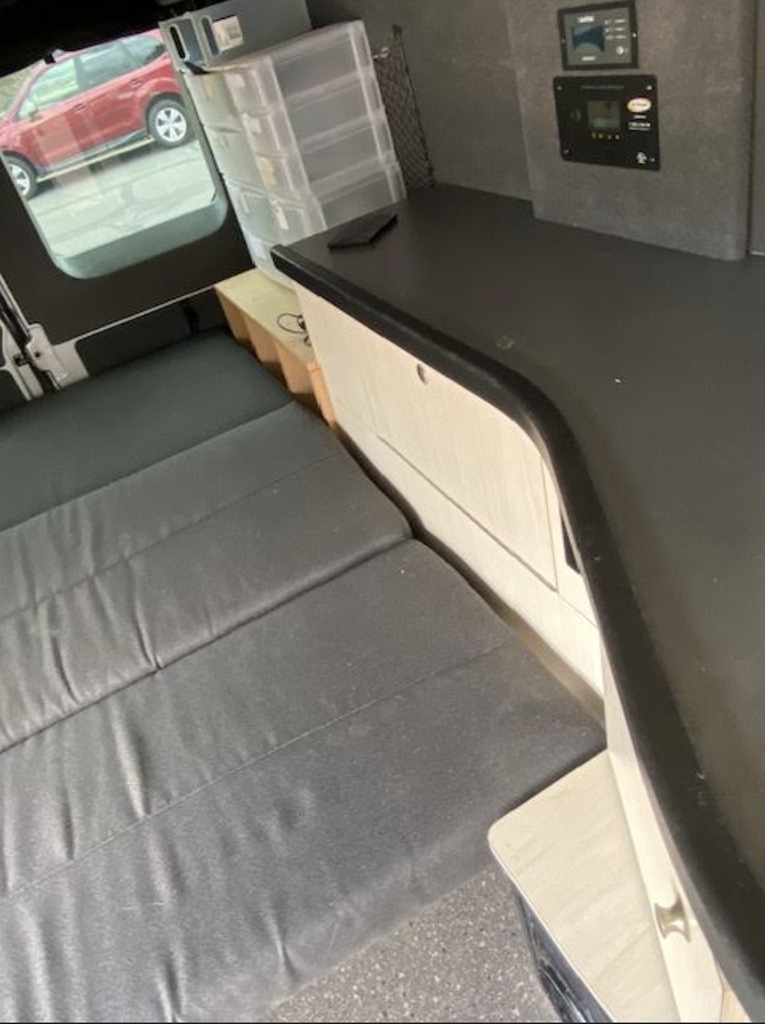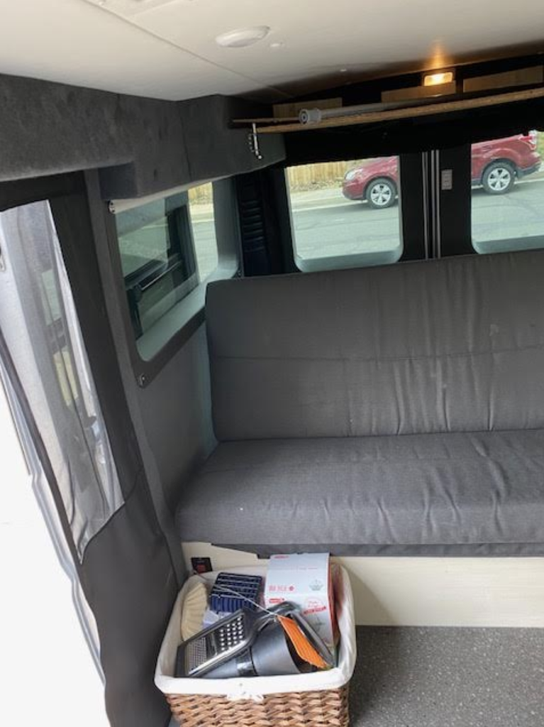 Inside, the Tofino offers a thoughtfully designed layout that maximizes both space and usability. The rear seating area quickly converts into a comfortable double bed, now enhanced with added storage space for better organization on extended trips. Above, the pop-top tented roof creates an additional sleeping area for two, making this van perfect for couples, families, or travel companions. All sleeping areas are surrounded by screened openings, allowing for fresh air flow while keeping insects out-ideal for peaceful nights wherever you roam.