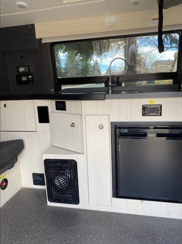 Functionality continues with a brown water holding tank system, making off-grid travel easier and more self-sufficient. The van is also equipped with practical extras that enhance both safety and comfort. Included with the sale are tire chains, a jack and spare tire setup, coffee pot, portable fan, crock pot, and additional travel essentials-saving you time and money outfitting your camper.