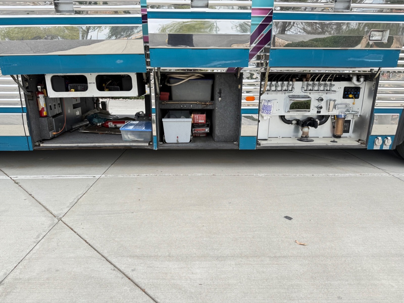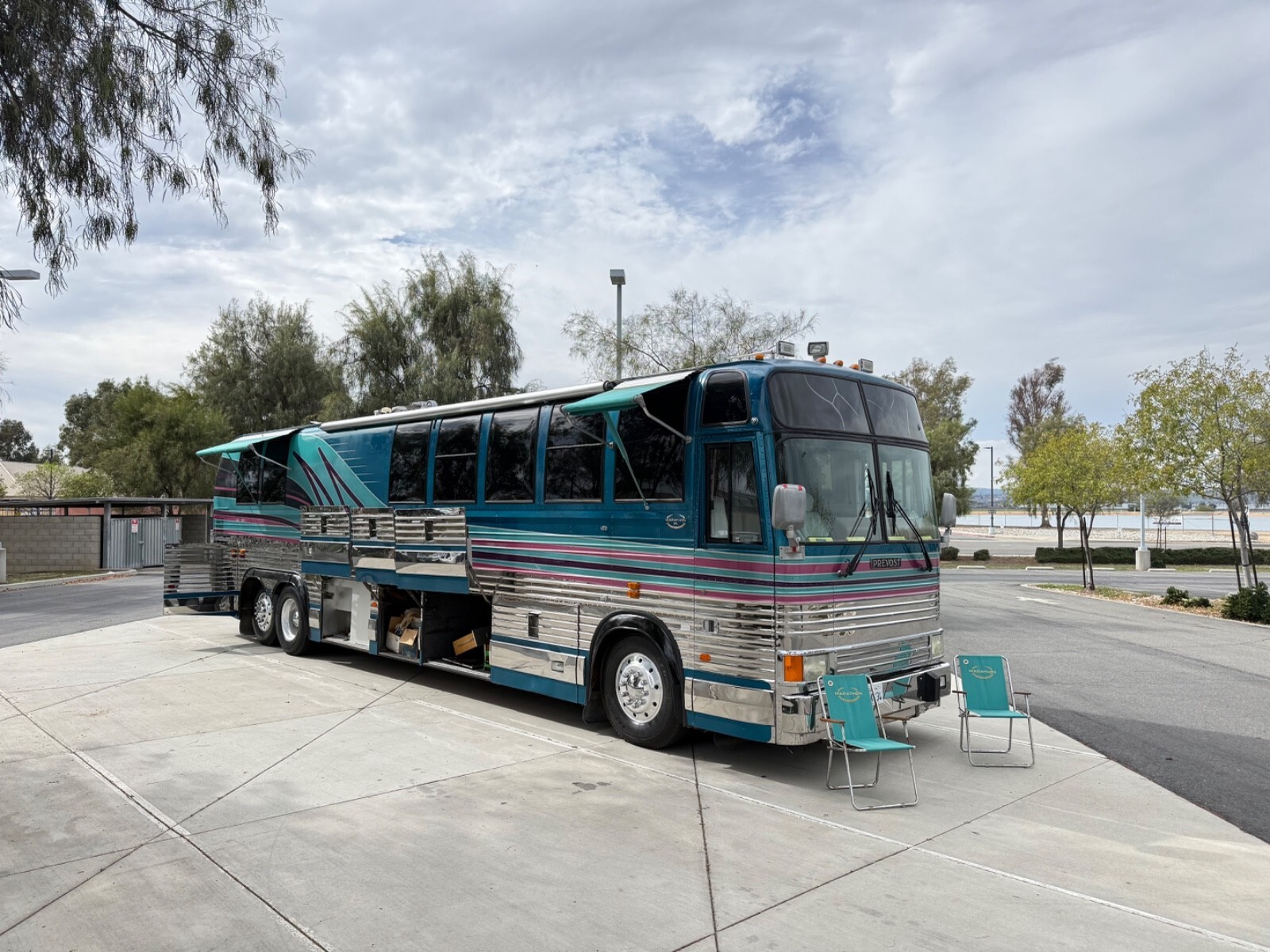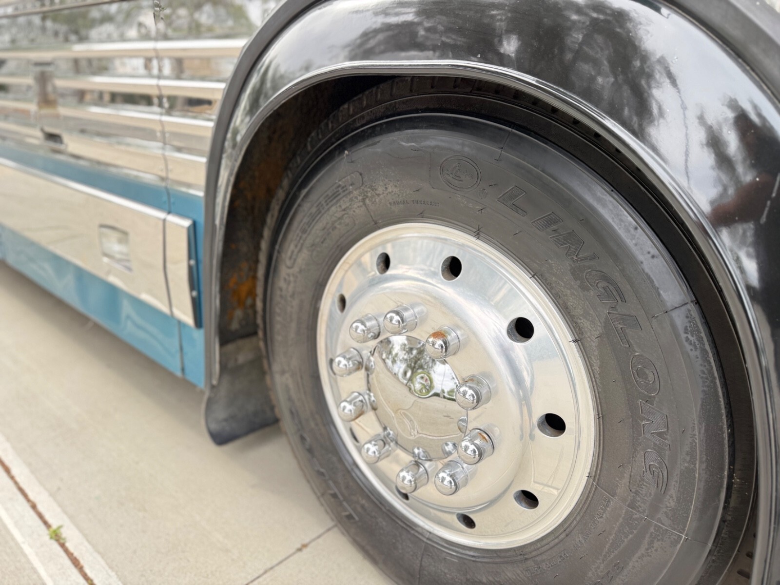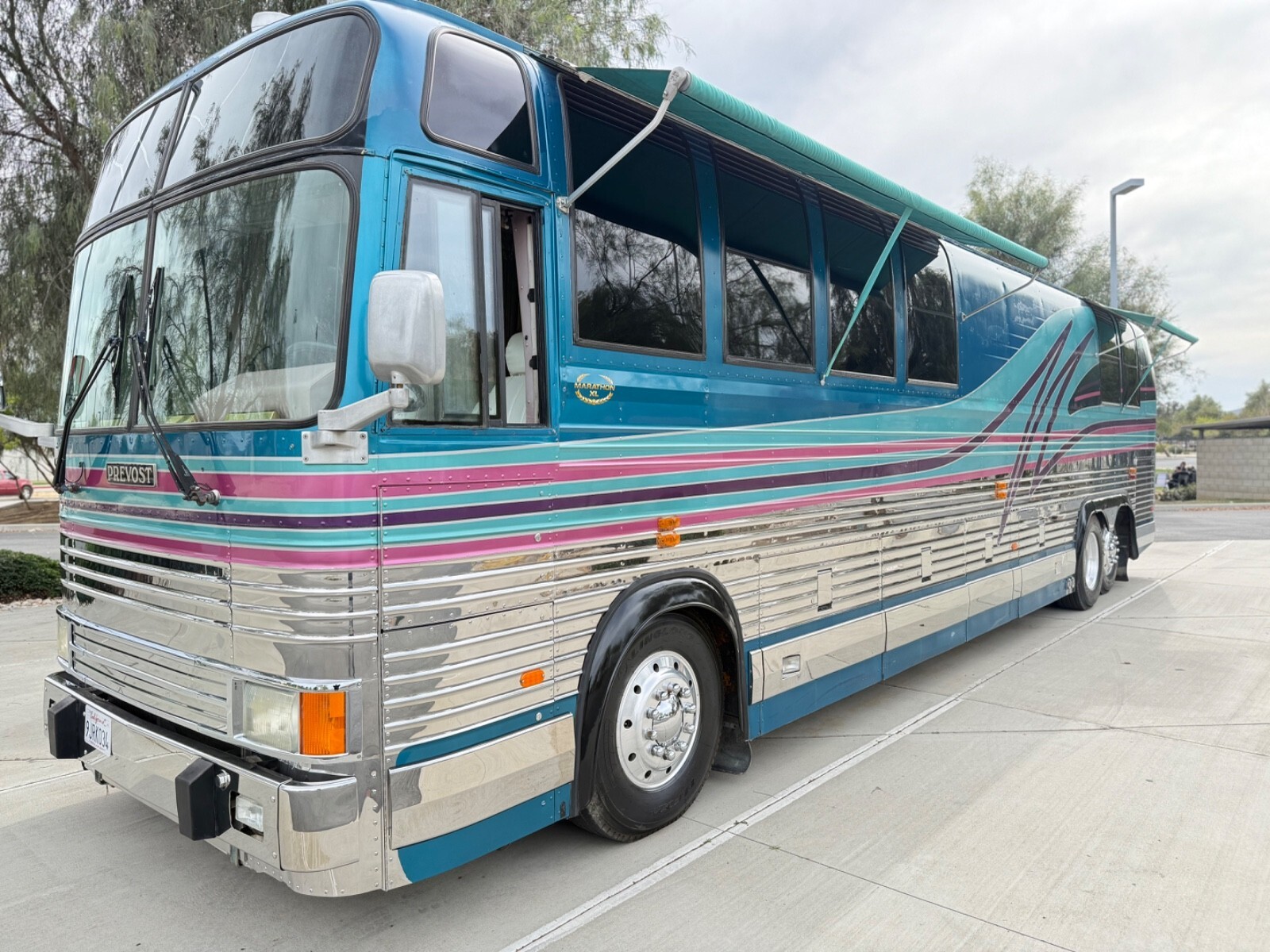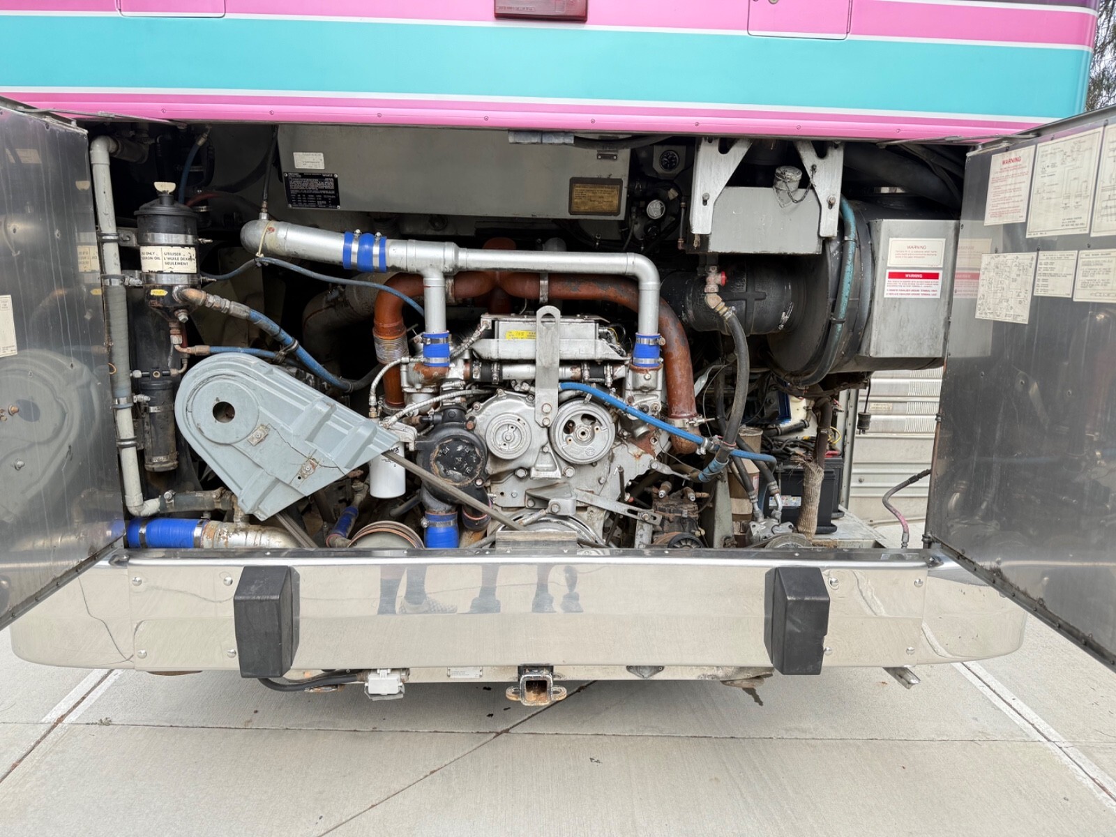 Well-maintained Prevost Marathon conversion with 205,000 miles. a 500 HP Detroit Diesel 8V92 and Allison HT-750 4-speed automatic (no retarder). Everything works as it should.