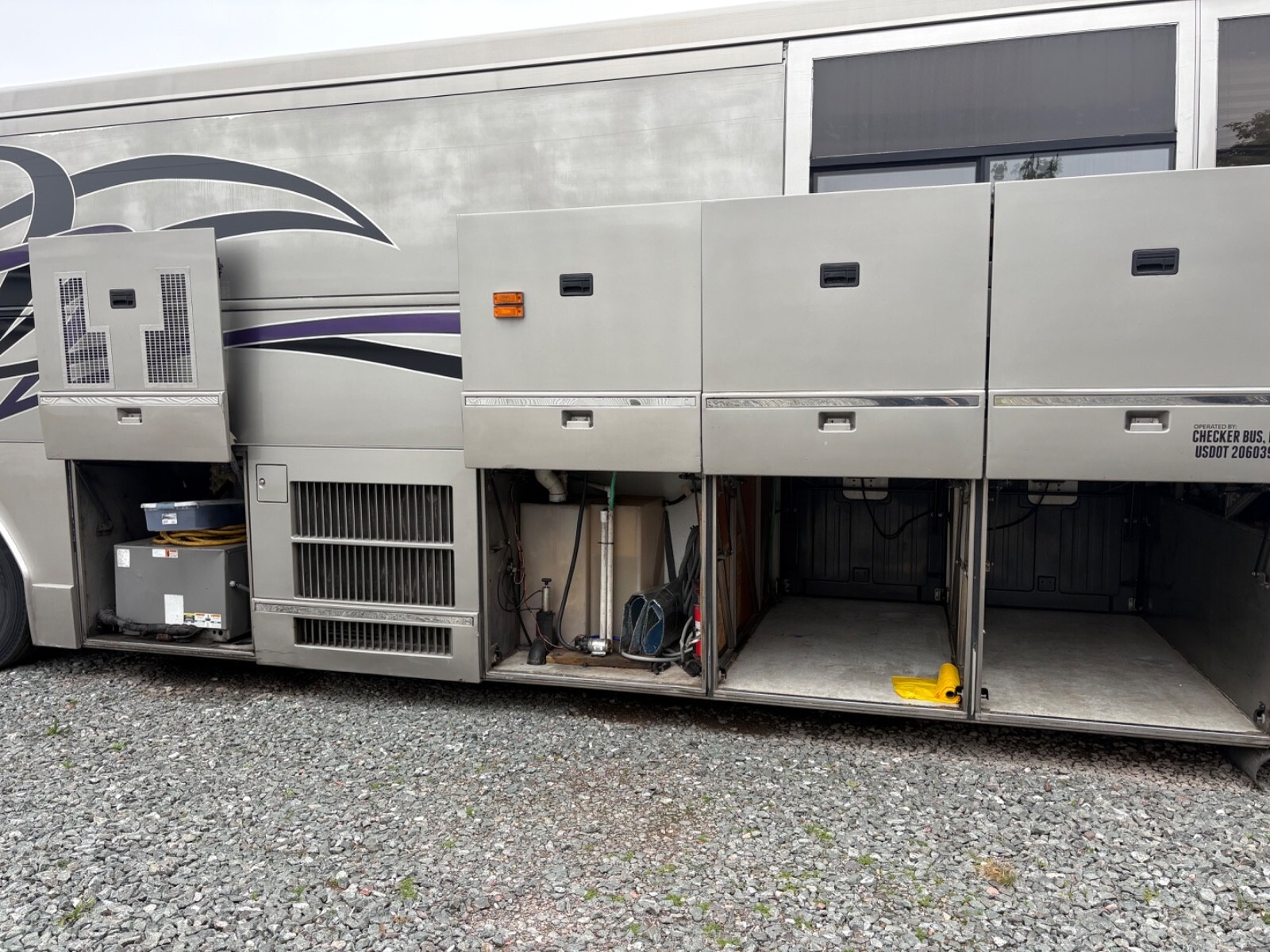 History: was a Dreamcatchers bus, then it went to Compass Coach, then us. It has seen some Midwest winters but still a solid bus.
