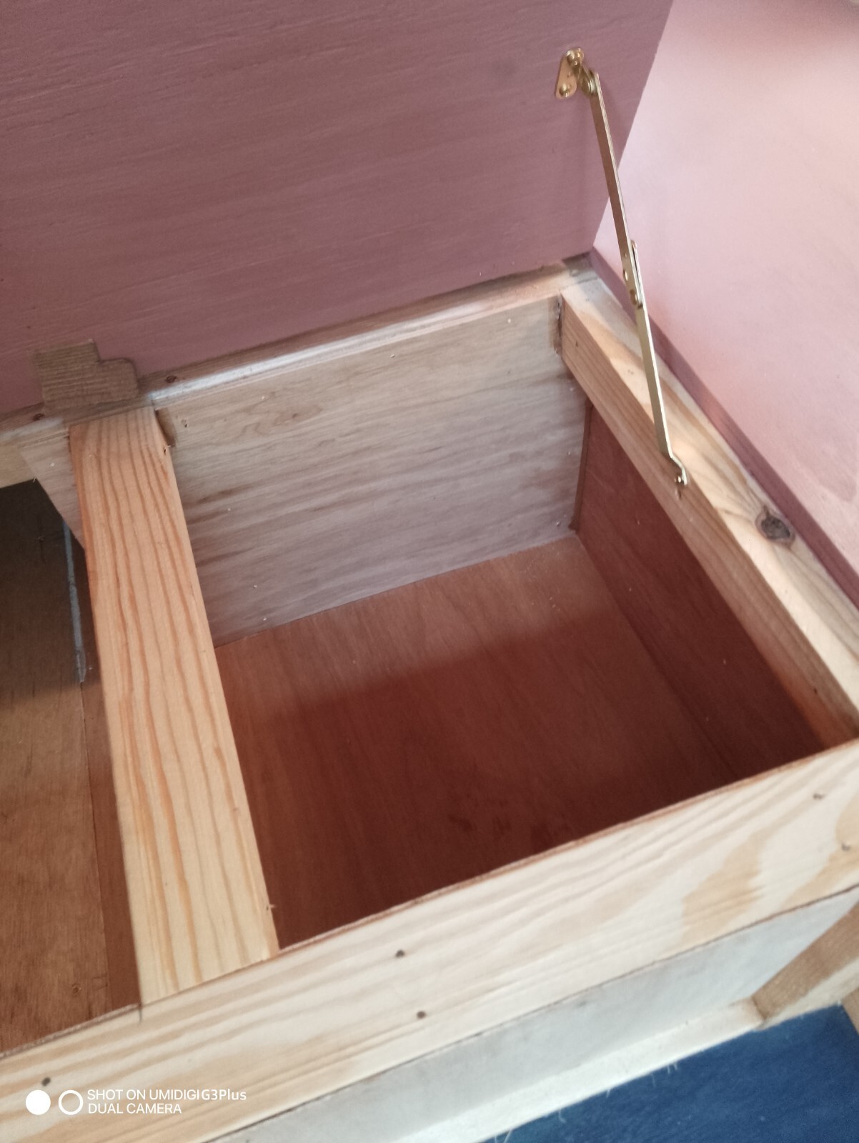 The interior is a nicely sanded pine with cedar trim at all the joints for added bug protection.