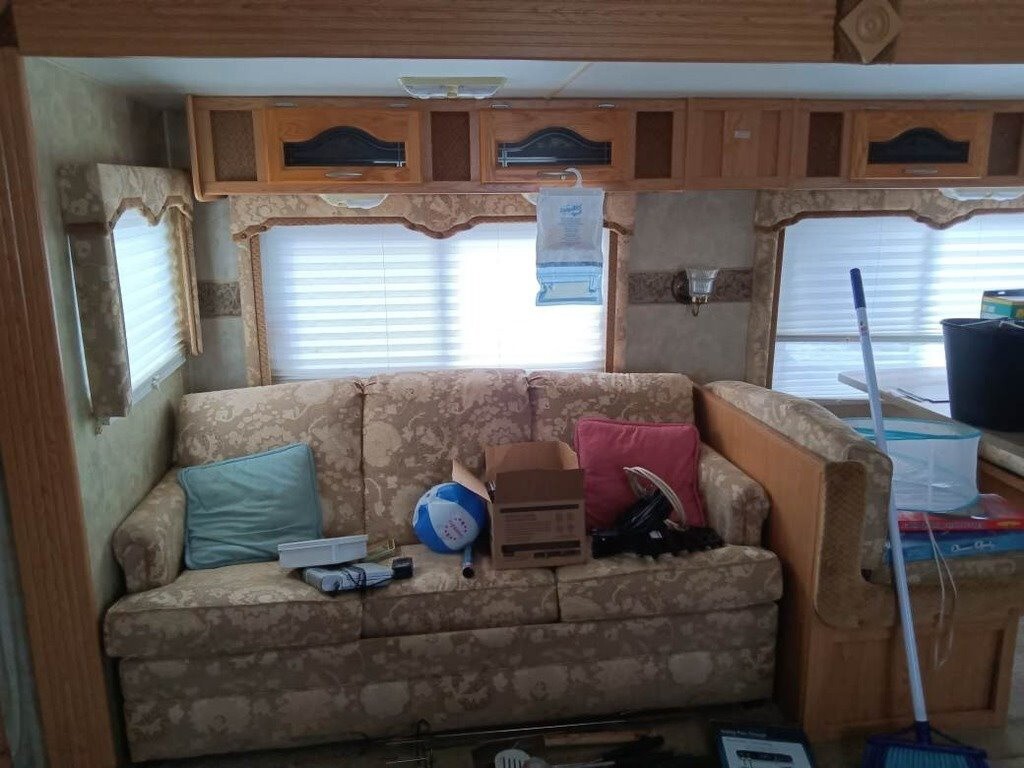 VIN: 1EC1F332X75345206 Type: Travel Trailer Length: Approx. 31–32 ft Slides: 2 automatic – fully operational Awning: 1 manual – good condition Roof: Good condition, no leaks known Tires: Fair condition Interior Condition: Fair Cabinets and doors intact Functional kitchen and bathroom fixtures Hitch: Bumper hitch Generator: None Winterized: Yes Keys: Yes Recent Use: Trailer moved within the last yearInterior / Layout Details: