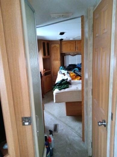 2 slide-outs: one expands living area, one expands bedroom Kitchen with cabinets and counter space (operational) Bathroom (soft floor spot noted nearby) Living and dining area opens with slide-outs Flooring is soft in a few spots Storage cabinets throughout interiorExterior & Utility: