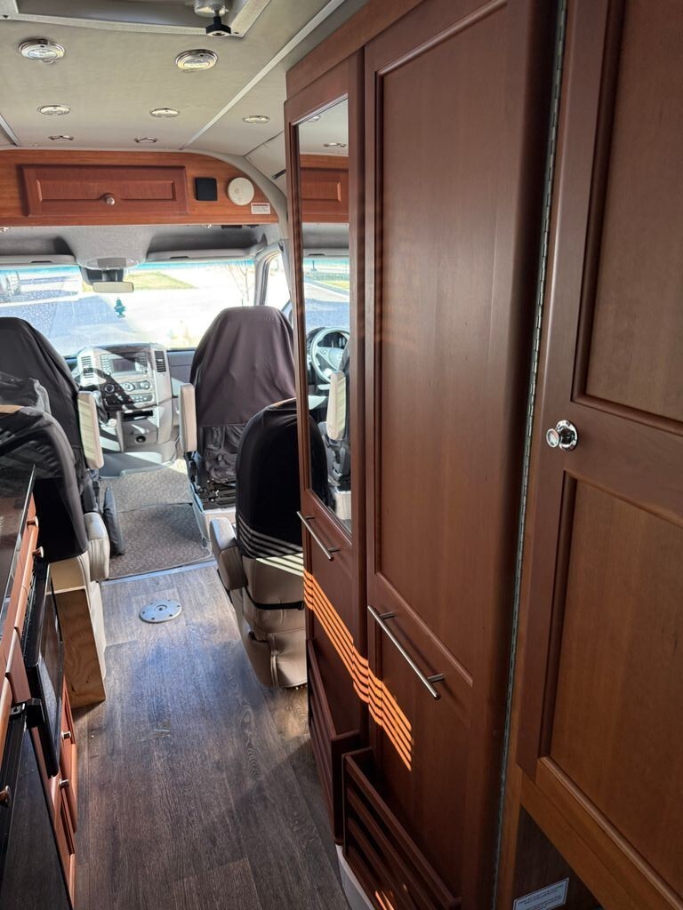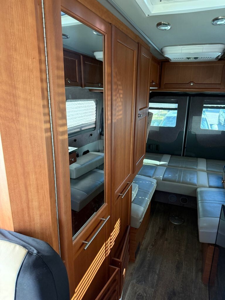 Inside, the thoughtfully designed interior maximizes space while maintaining a comfortable and stylish living environment. The rear lounge converts into either two twin beds or a spacious king-size sleeping area, while additional seating up front allows the coach to comfortably travel with several passengers and sleep up to four people. Large windows, LED lighting, and quality cabinetry create a bright and welcoming atmosphere throughout the coach.