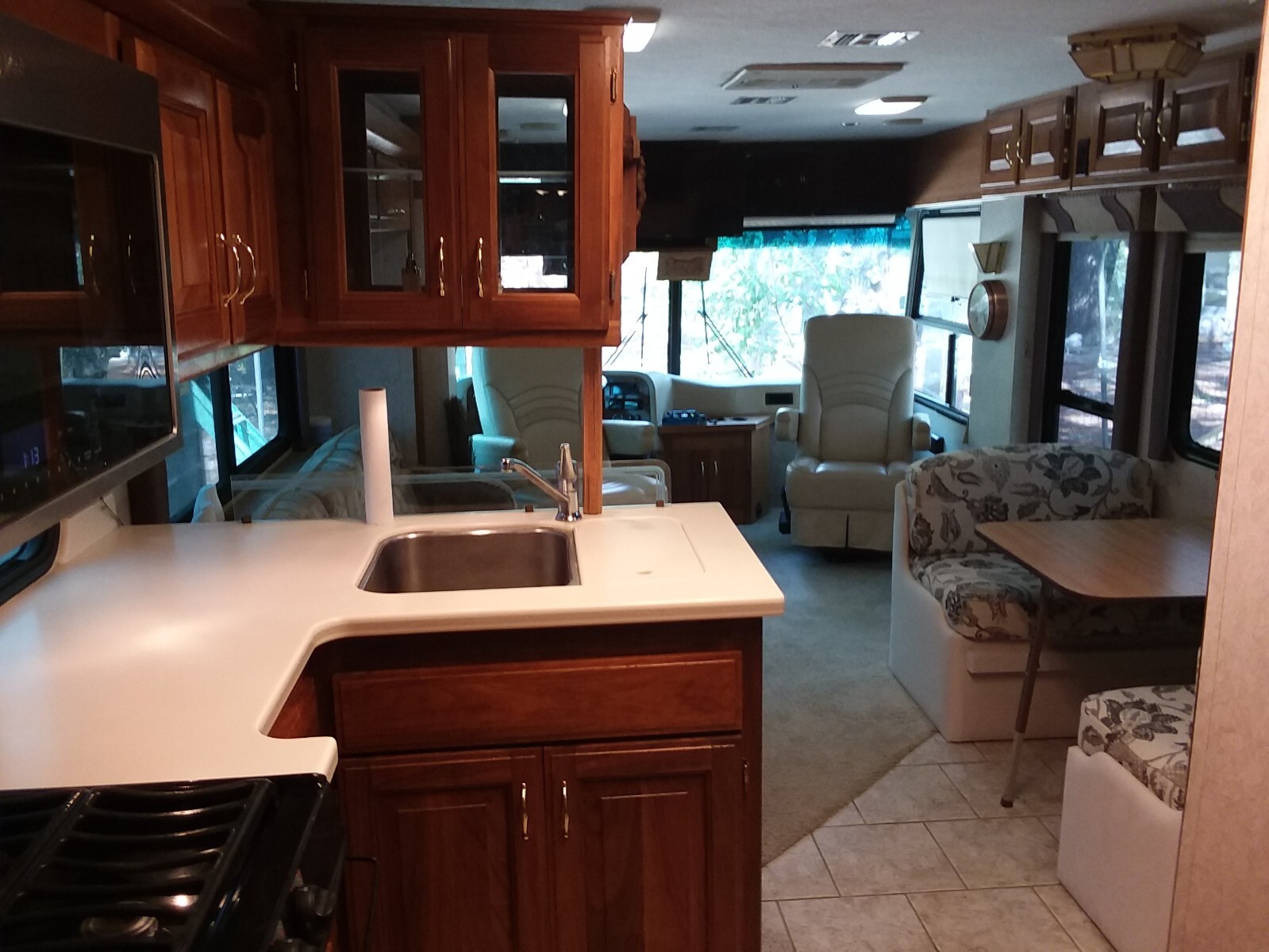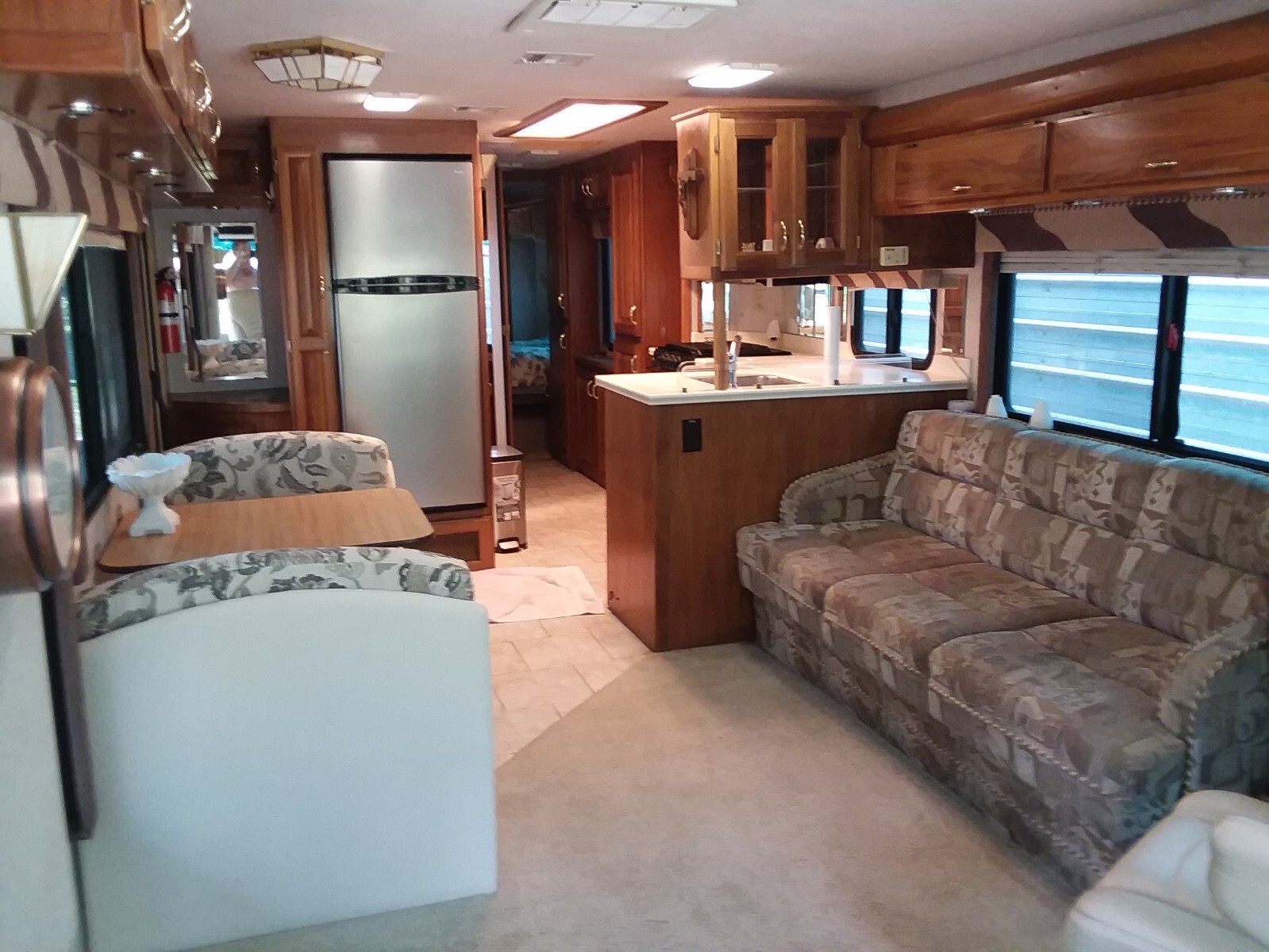 2001 Safari Zanzibar Class A Motor home. Cat 330HP Diesel Engine. Toyo Tire, 2 Slide Outs, Awning, Sleeps 4, Dual A/C Units, Leveling System. Step inside and take a look back at all of the convenient features that would make any journey enjoyable. The kitchen area features everything you need to prepare great meals on the go including a sink, a three burner range with microwave/convection oven, and a refrigerator/freezer. There is also plenty of storage for all of your dry and canned goods. Have a seat at the comfortable dinette, where you can enjoy meals with your family, Just been service ready to go